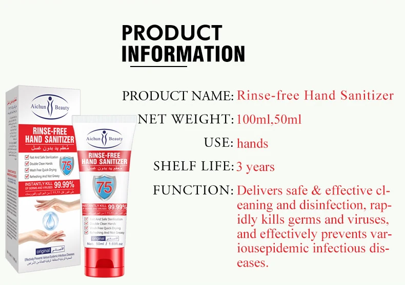 Использование: нанесите соответствующее количество этого продукта на ладонь, протрите обеими руками до высыхания без стирки. Меры предосторожности: 1. Этот продукт предназначен для внешнего использования, не принимается в устной форме, Избегайте контакта с глазами и держите подальше от детей. 2. Воспламеняющийся, пожалуйста, держите подальше от источника огня, не теряйте к источнику огня, прежде чем не испаряется полностью при использовании. 3.1f есть раздражение кожи, пожалуйста, прекратите использование, если дальнейшее раздражение, пожалуйста, обратитесь к врачу и держите его ниже