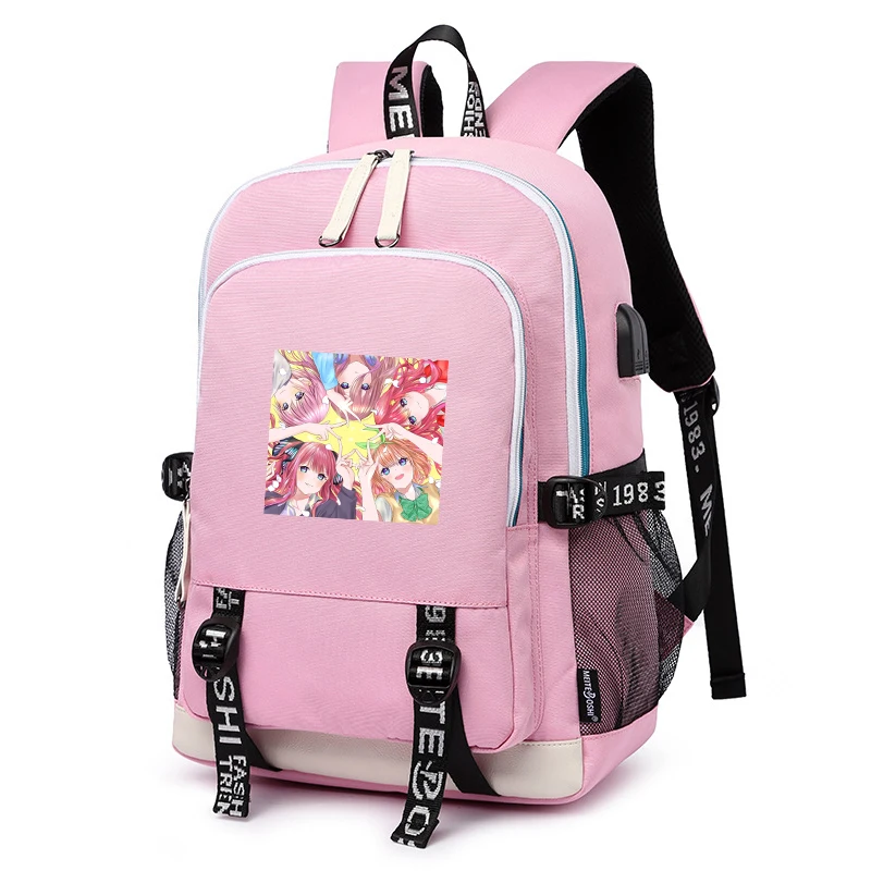 Квинтэссенция Quintuplets Оксфорд дорожный рюкзак мультфильм школьные сумки для девочек-подростков USB порт ноутбук рюкзак розовый книжный мешок