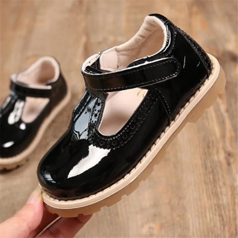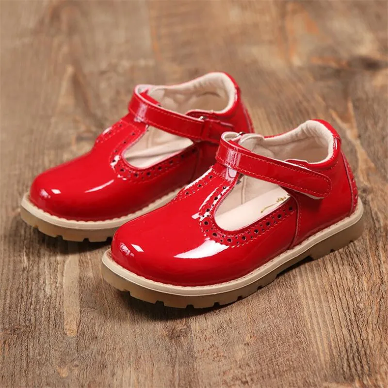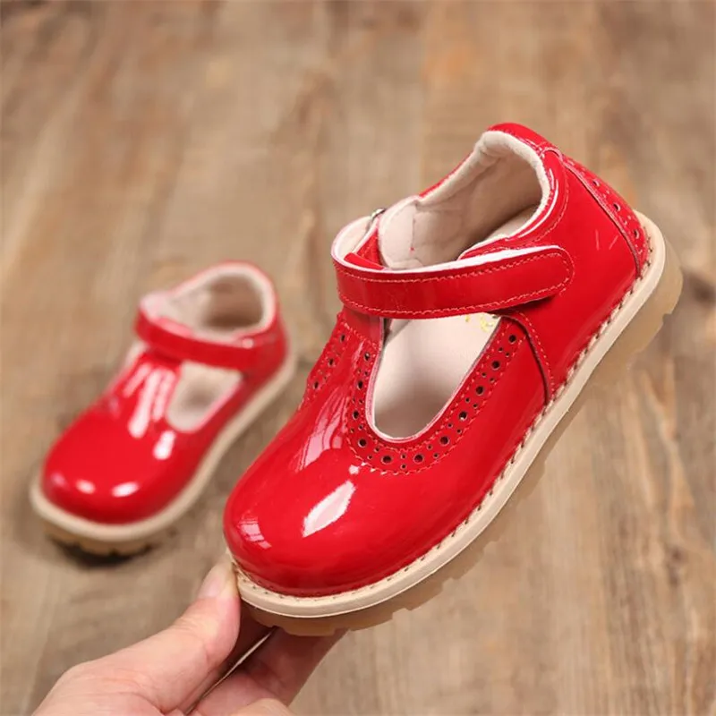 Новинка; Кожаные туфли в британском стиле ретро; Детская обувь для девочек; Цвет красный, розовый, черный; Вечерние туфли принцессы на мягкой плоской подошве для маленьких детей; Обувь для танцев