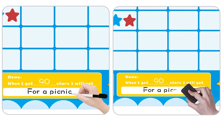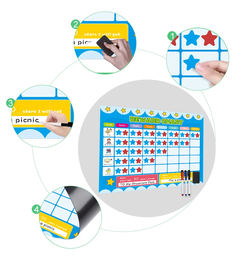 Таблица наград + 40 шт. магнитных наклеек + маркерная ручка + Ластик + 100 шт. наклейка со звездами + инструменты для установки