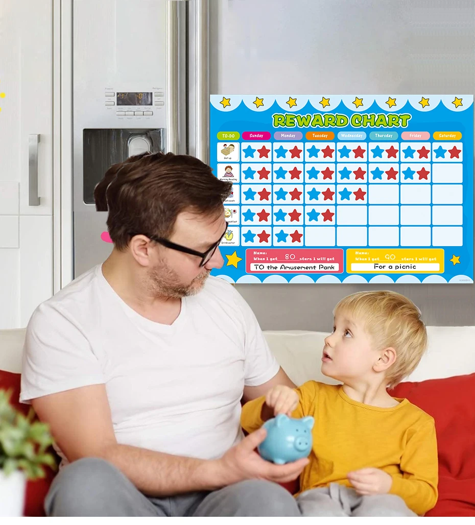 Описание: детские chore chart, магнитное расписание, to-do list Материал: магнитный порошок, резина, HD печать, ПЭТ пленка. Особенности: самомагнитный, гибкий, поддержка письма, портативный, прочный. Размер: 42*30 см Толщина: 0,4 мм Стираемость: сухая стирается, долговечная яркая и легко очищается. Применение: нанесите на поверхность из железа, например, на холодильник и так далее.