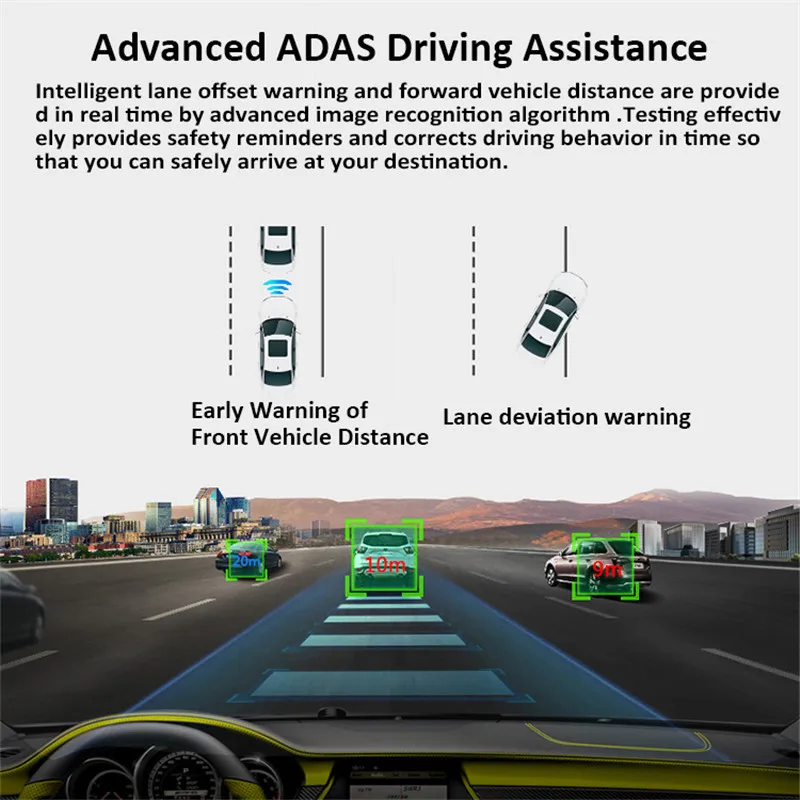 3. ADAS intelligent assistant system-Вам нужно подключиться к системе Android 4,2 выше. Когда устройство обнаруживает, что транспортное средство находится спереди, чтобы закрыть его, он будет оповещать водителей, чтобы они обратили внимание на дорожные условия или ненормальное транспортное средство.