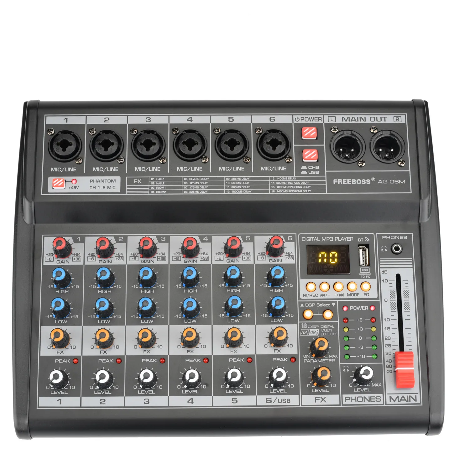 Freeboss AG-06M звуковая карта 48В микшерный пульт Phantom Мощность 16 цифровой USB Запись Функция DJ микшер 6 каналов![]()
