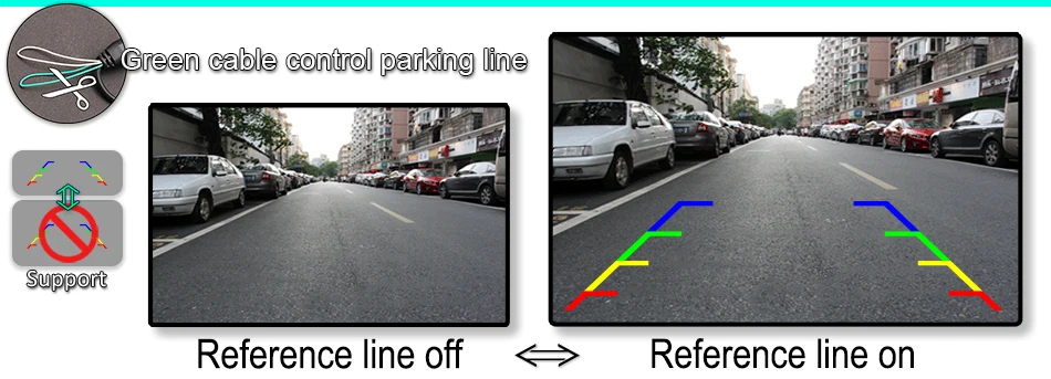 • Не нужны интерфейсы CANBUS или OBD, встроенный модуль треков заднего хода камеры, просто подключите питание. • Не поддерживает управление рулевым колесом. • Отрегулируйте трек автоматически в соответствии с движущимся положением и скоростью кузова и угла, что поможет вам облегчить парковку. • Широкий угол обзора 155 °.