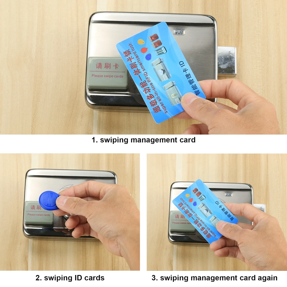 Метод приложения Master Card (для добавления пользователя) 1. Чтение основной карты, светильник 2. Считыватель пользовательской карты или пульта дистанционного управления 3. Снова Читайте главную карту Метод приложения Master Card (для удаления пользователя) 1. Чтение основной карты, светильник 2. Считыватель пользовательской карты 3. Снова Читайте главную карту Восстановление завода: Нажмите кнопку set, красный светильник мигнет 8 раз, все данные будут удалены. «Добавить мастер»: нажмите кнопку «Set», красный светильник мигнет 3 раза, затем проведите главную карту. Тест на старение: Нажмите кнопку set, светильник мигнет 16 раз.