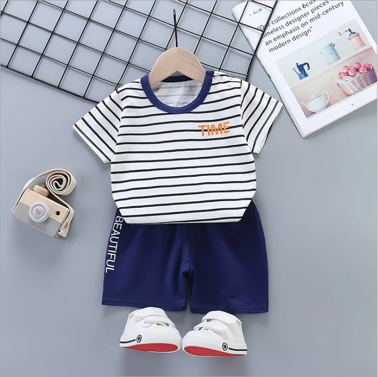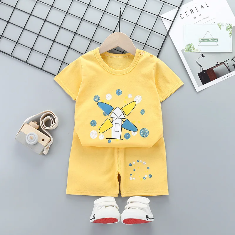 Комплекты одежды для маленьких мальчиков и девочек 2021 г. Летняя хлопковая футболка с короткими рукавами топы + шорты детская одежда с героями мультфильмов A0099
