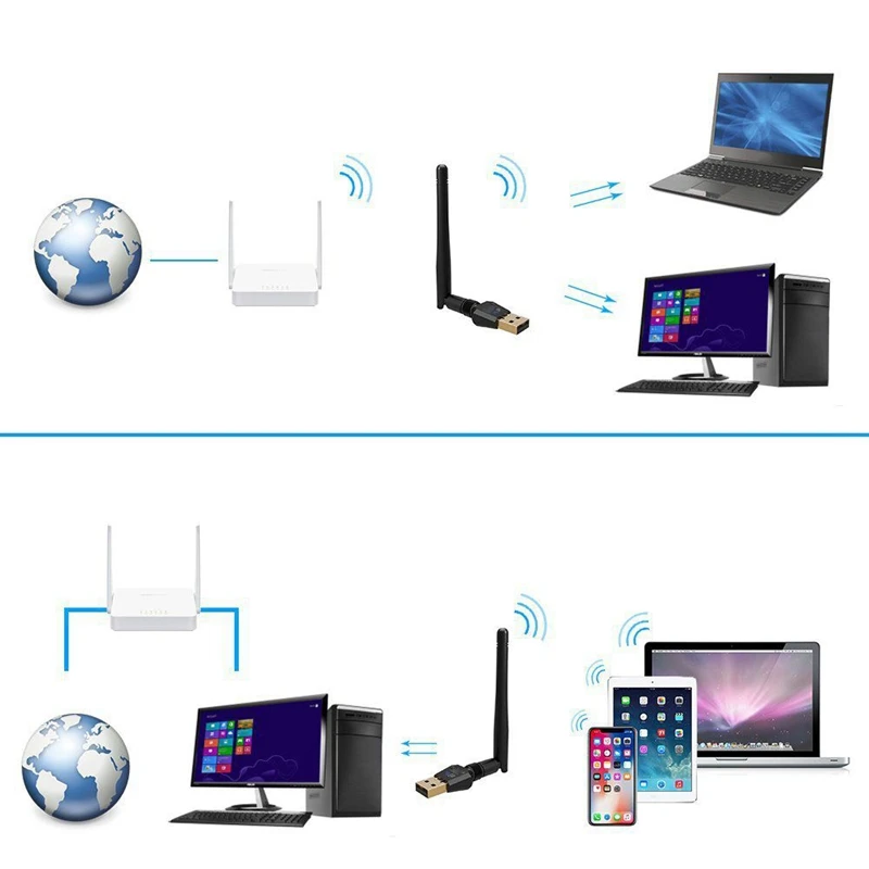 Ультра Совместимость: Поддержка Windows XP/7/8/10, MAC OSX для настольных компьютеров и ноутбуков. Совместим практически со всеми беспроводными маршрутизаторами. Если ваш компьютер получает слабый сигнал или у вас нет функции Wi-Fi, этот адаптер USB wifi будет вашим лучшим выбором. Антенна 2dBi с высоким коэффициентом усиления позволяет легко подключать лучший сигнал WiFi. Программное обеспечение AP превращается в беспроводную точку доступа для других устройств.
