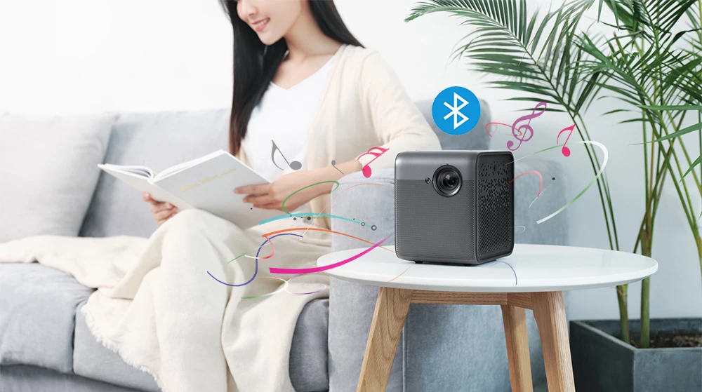 Вы можете использовать его как bluetooth-динамик, подключить телефон к проектору по Bluetooth. Воспроизводите музыку, затем нажмите кнопку питания на пульте дистанционного управления. Затем выберите выключить экран. Вы можете начать наслаждаться динамиком Bluetooth.
