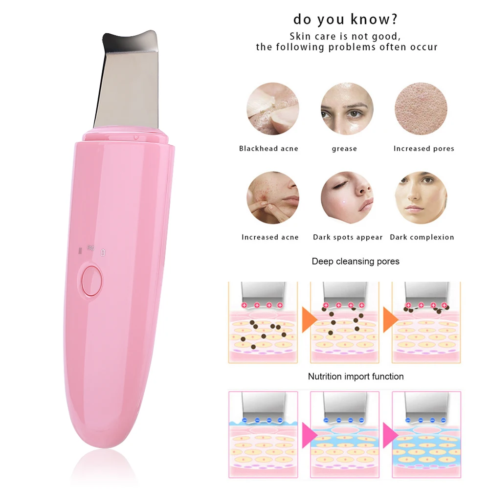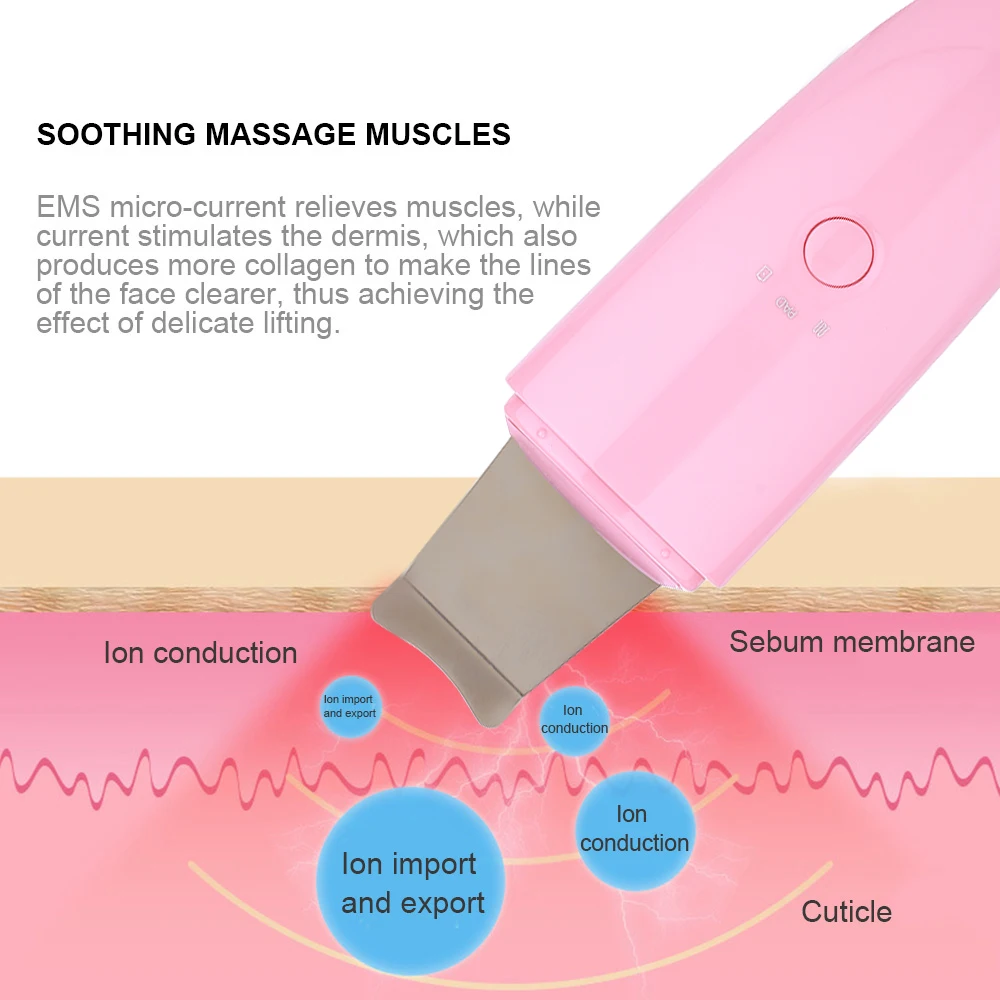 Ультразвуковой скребок для кожи лица ионное лицо Глубокая чистка пилинг Лопата полая угрей Очиститель Машина инструменты для ухода за кожей Массажер