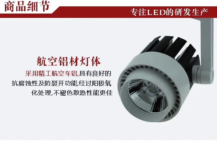 Тип: трековые огни Тип СВЕТОДИОДА: COB Цвет линз: Прозрачный Напряжение (В): AC110-240V Срок службы (ч):> 50000 ч Гарантия производителя (год): 2 года CRI: 80 Материал: алюминий Содержимое упаковки: 1 Светодиодная лампаХарактеристики светодиодного трека: