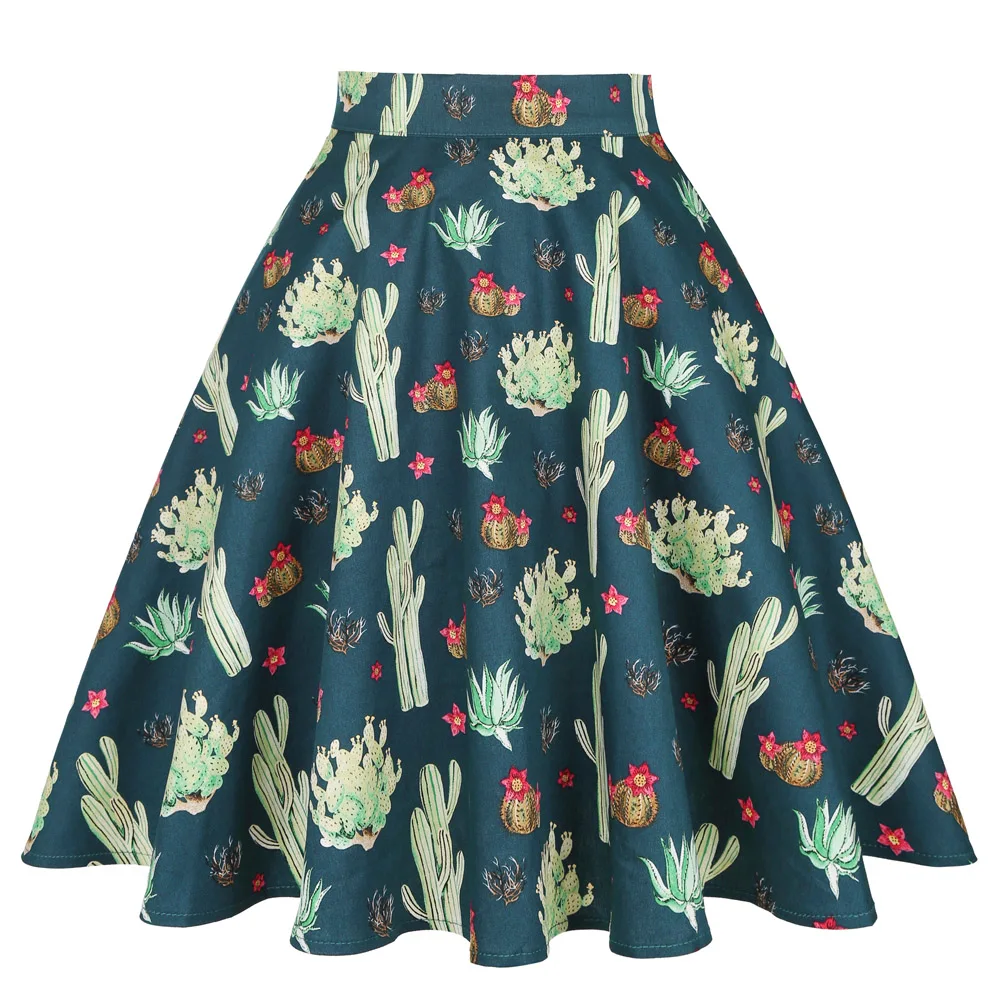 Хлопковая летняя юбка с цветочным принтом и КАКТУСОМ vd0020 50s 60s трапециевидные юбки с завышенной талией и принтом Одри Хепберн