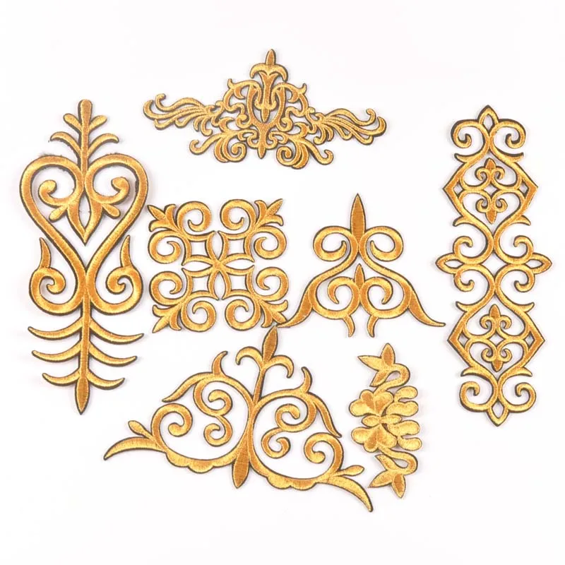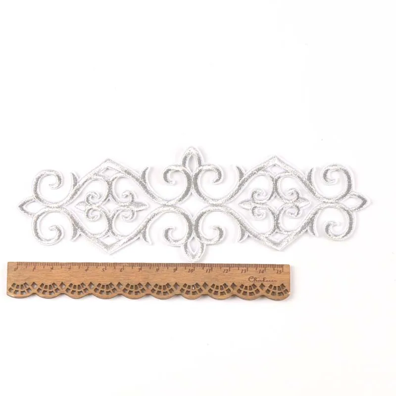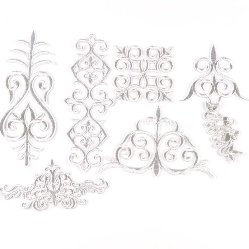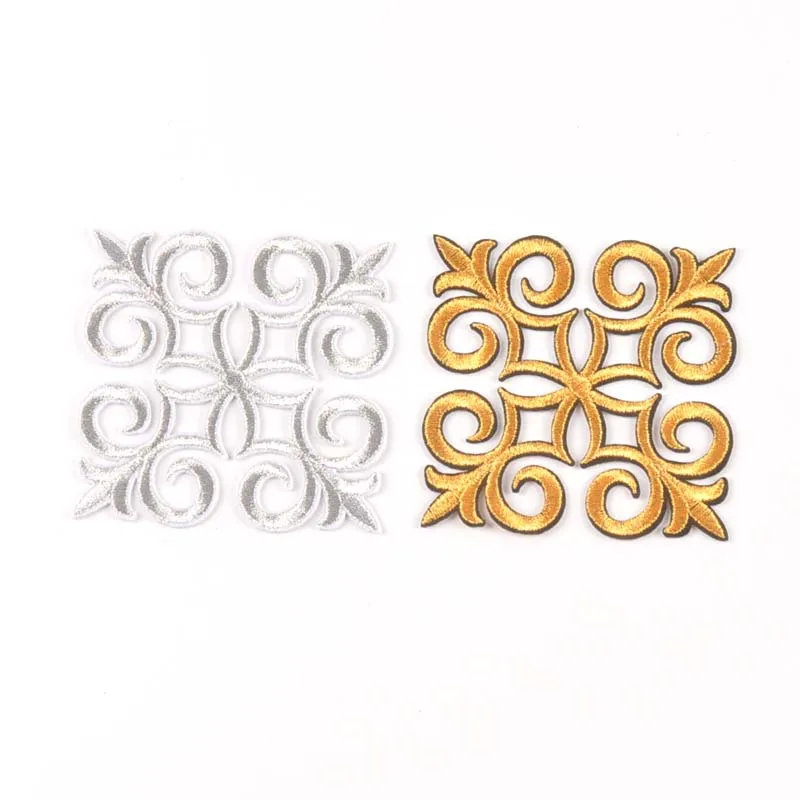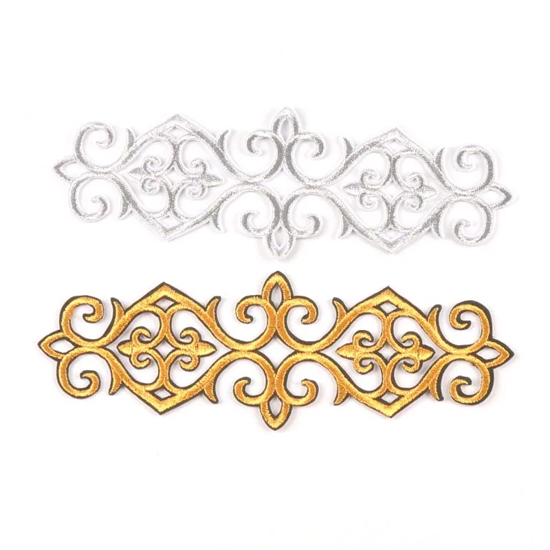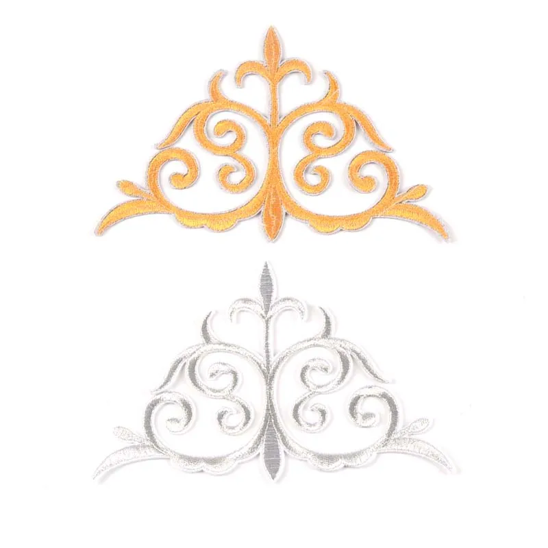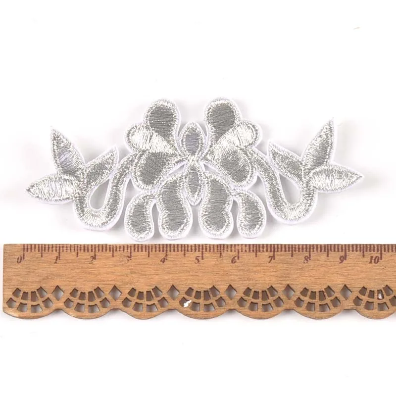 2 шт. Серебристая/Золотистая Цветочная кружевная нашивка термоклейкая вышивка аппликация мотивы для шитья одежды наклейки для одежды CP2426