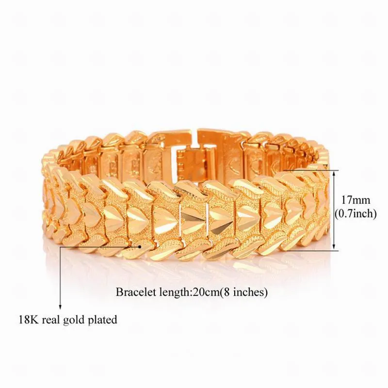 1. Тип изделия: браслеты 2. Тип цепи: звеньевая цепь 3. Стиль: хип-хоп/рок 4. Пол: унисекс 5. Материал: металл 6. Длина: 20 см 7. Ширина: 1,7 см 8. Цвет: золотой, серебряный