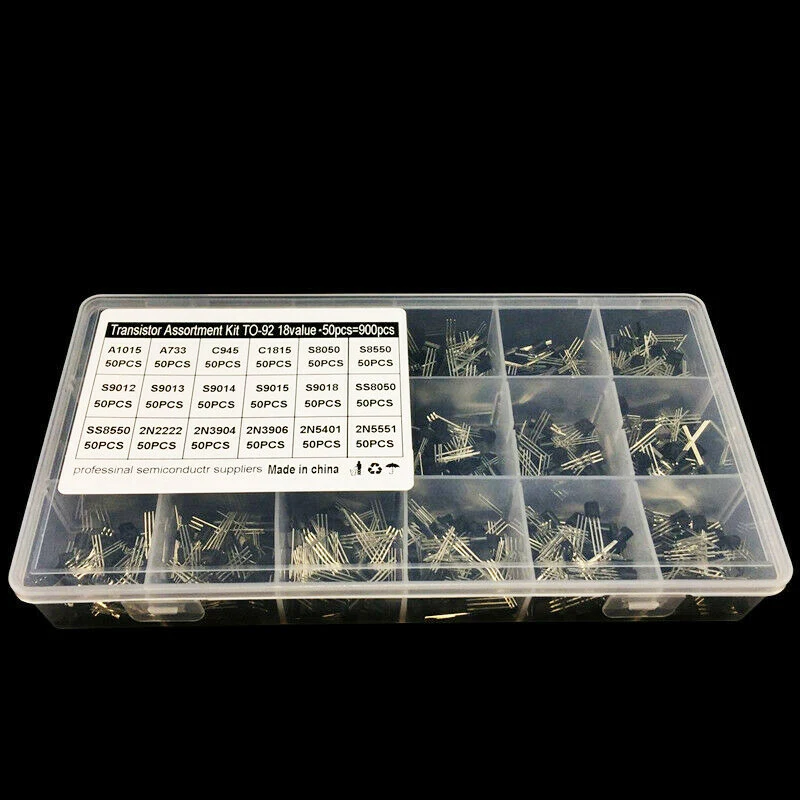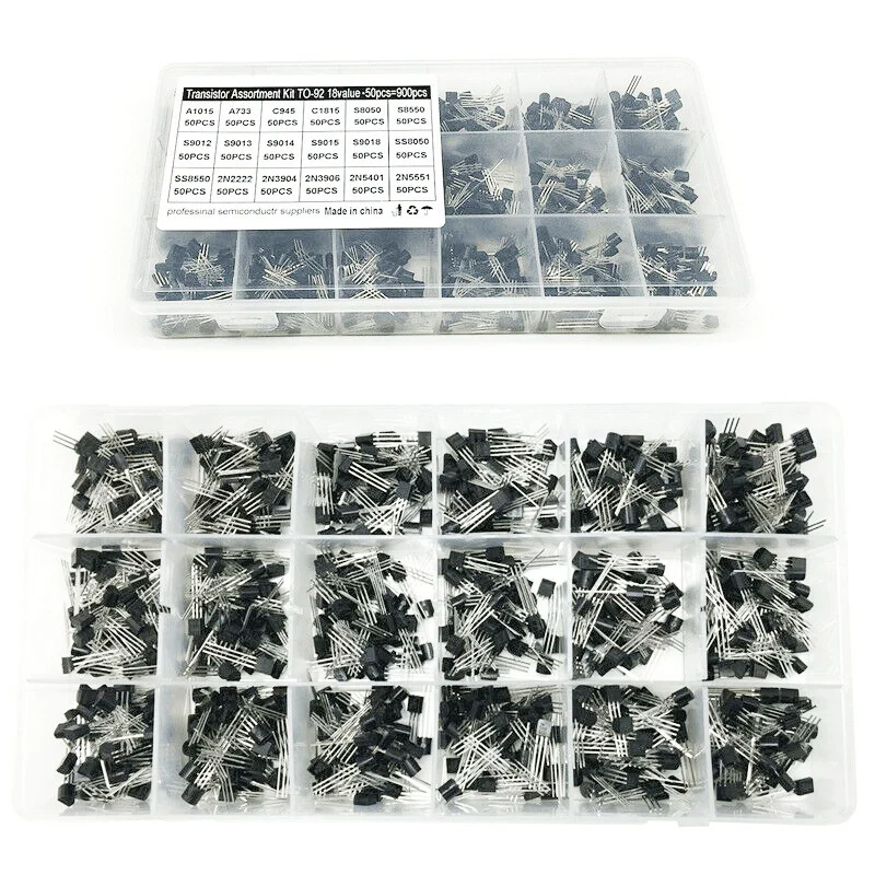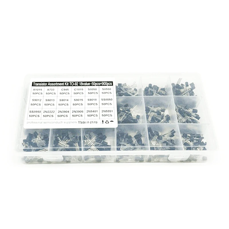 18 значений 900 шт TO-92 транзисторный набор A1015 2N2222 C1815 S8050 2N3904 2N3906 S9012 NPN/PNP Набор транзисторов