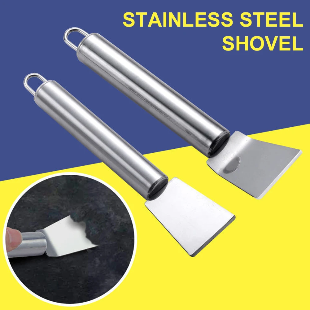 * 1. Весь шпатель для чистки из нержавеющей стали, который достаточно жесткий, чтобы удалить все виды упрямой грязи. Круглый скребок для шпателя позволяет не царапать холодильник, безопасно использовать.