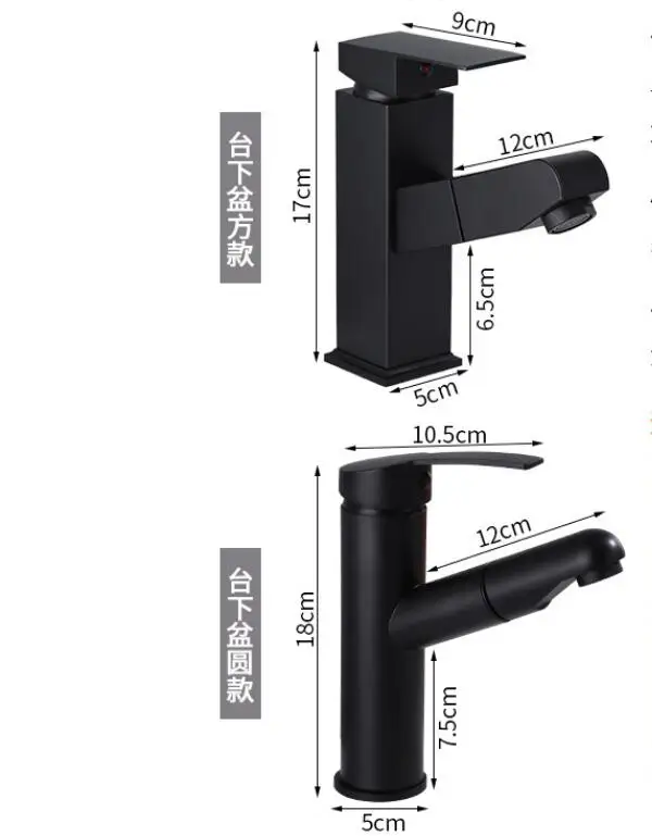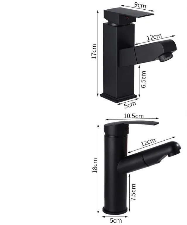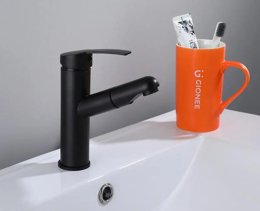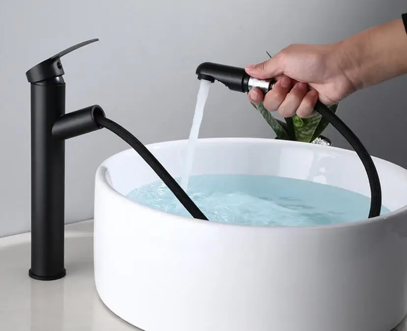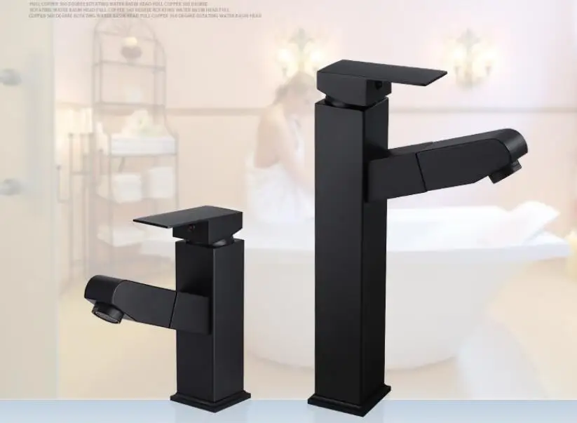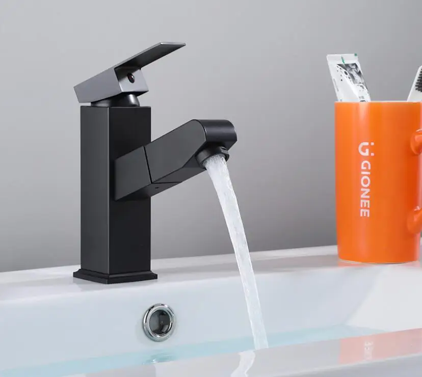 Выдвижной кран для раковины для ванной комнаты, кран для горячей и холодной раковины, смеситель, кран для поднятия вверх и вниз, черный смеситель для воды на 360 градусов