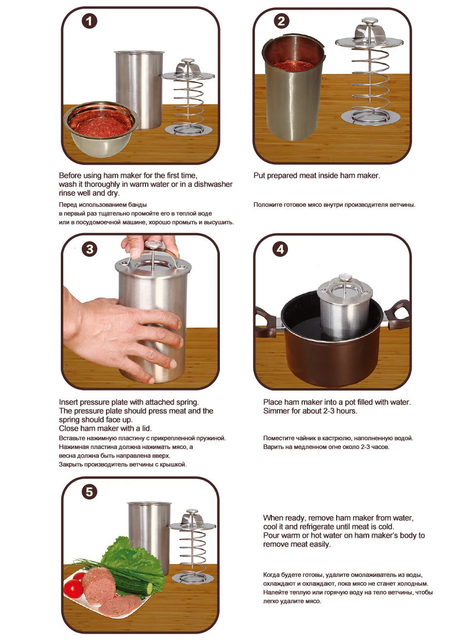 Пресс для ветчины позволит вам создать свое собственное сэндвич-мясо с использованием самых натуральных ингредиентов! Разработано, чтобы обеспечить вам легкий опыт, все, что вам нужно сделать, это следовать комплексным инструкциям и получить Творческий опыт! Вас не беспокоит диета вашей семьи? Вы не хотите, чтобы они ели здоровее? Эксклюзивный пресс для ветчины здесь, чтобы сделать вашу жизнь проще!