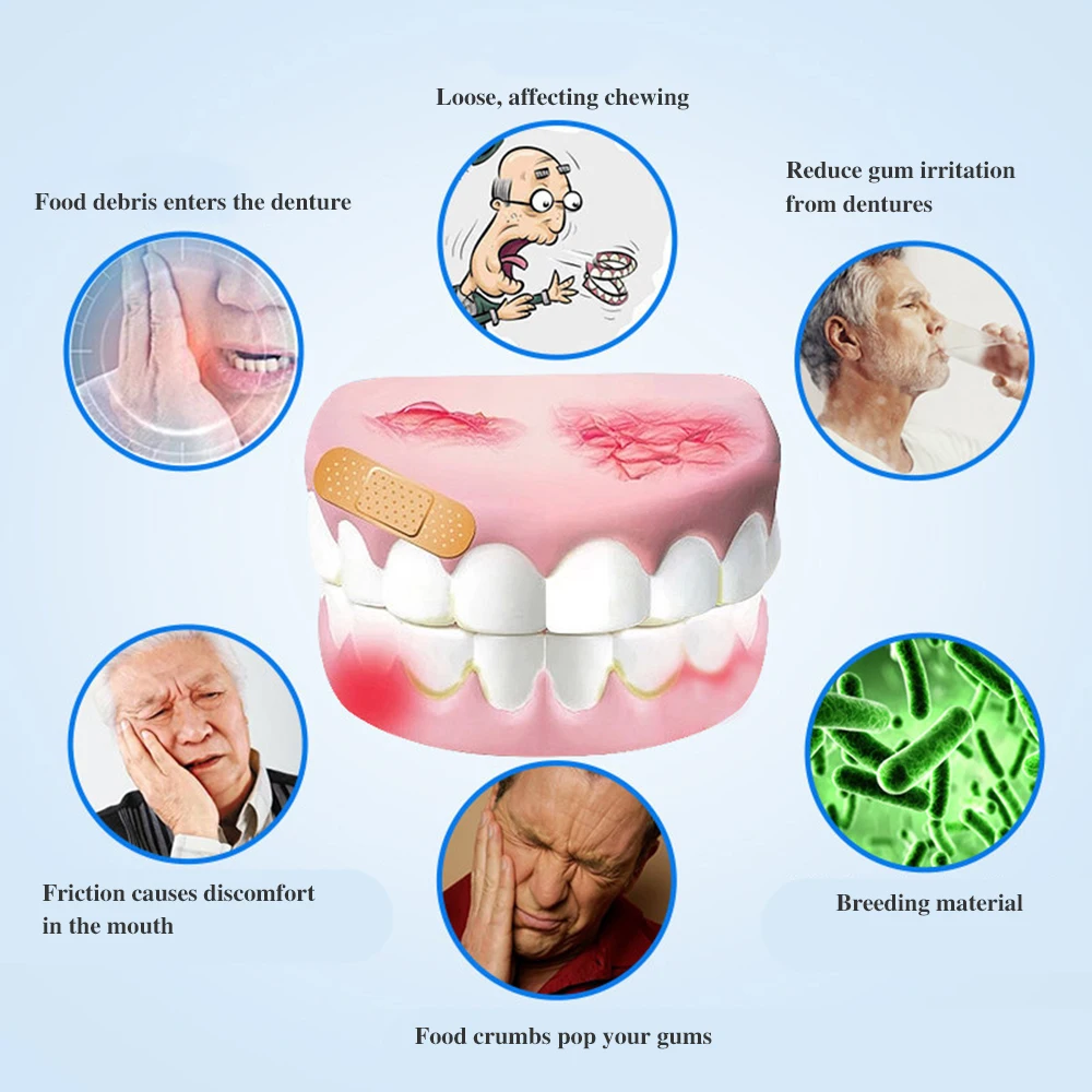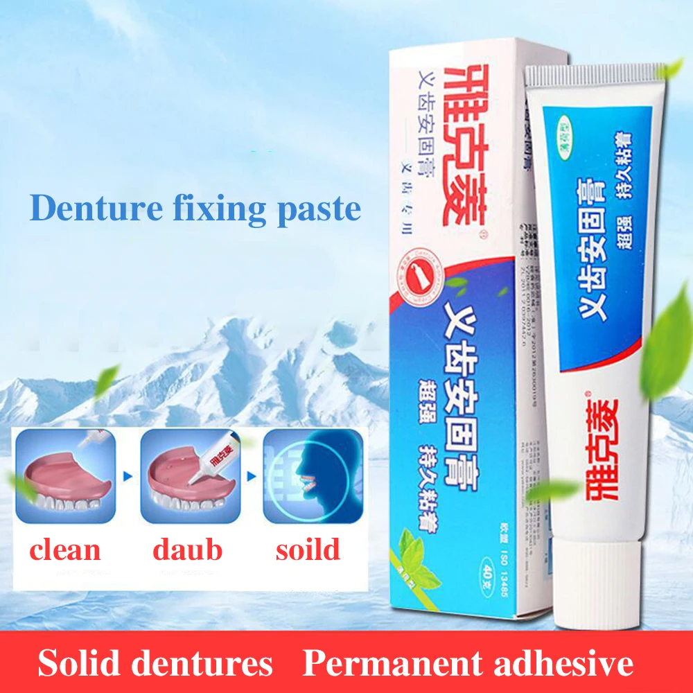 Название продукта: клейкий крем для зубных протезов Размеры: 40 г (1,4 унций) Место происхождения: Аньхой, Китай Срок годности: 3 года Особенности: • Улучшает протез подходит * Сильной фиксации * Мятным вкусом * Формула без цинка * Помогает запечатать еду Состав: кальций, минеральное масло, нефрлатум, целлюлоза, кремнезем. Подходящая Группа: для полных протезов, для частичных протезов. Инструкции по использованию: Применение: 1. Очистите и высушите протез 2. Нанесите небольшое количество крема на тонкие полоски, не слишком близко к краям протезов 3. Плотно прижмите к месту, крепко удерживайте и укусывайте в течение нескольких секунд, чтобы обеспечить безопасность Удаление: 1. Поворотный рот с водой 2. Медленно удалите протез с помощью движения качания 3. Удалите остатки клея из протеза и рта теплой водой и мягкой щеткой