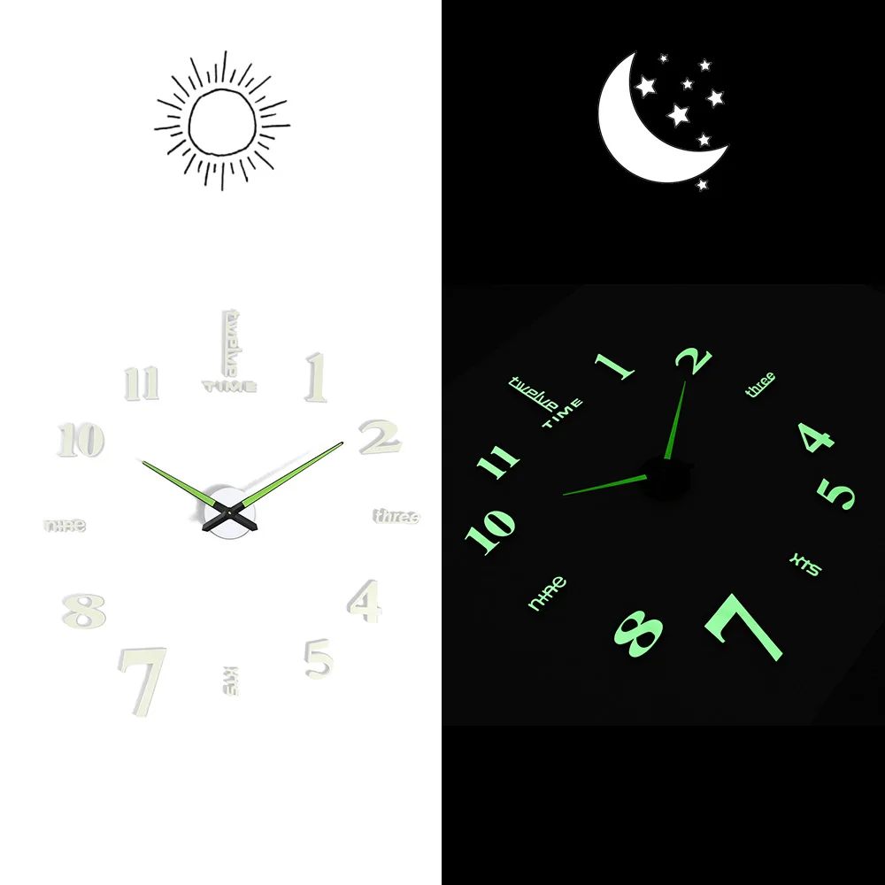 2019 New Luminous Wall Clocks Largre Clock watch Horloge 3D DIY Acrylic Mirror Stickers Quartz Duvar Saat Klock Modern mute