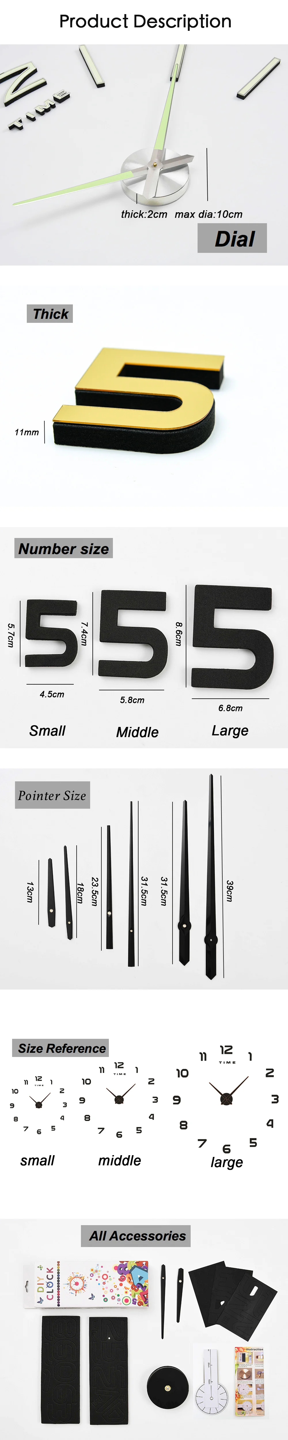 Wall Clock Large Modern Design Digital 3D Vintage Luminious Watch Horloge Diy Acrylic Mirror Quartz Reloj de Pared Brief Stereoscopic Silent