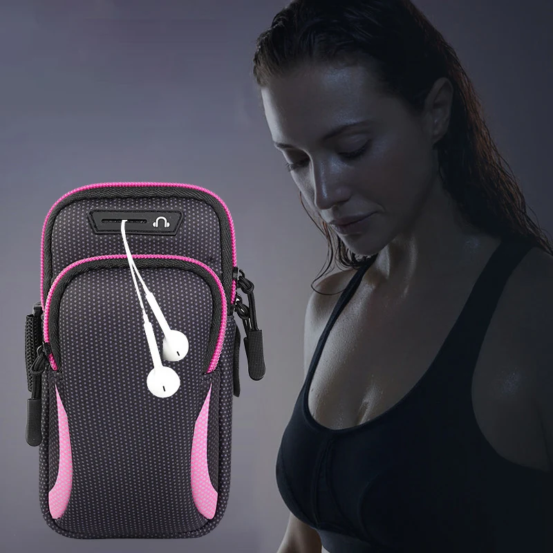 Двойная молния 7,4 дюйма ремень Спортивная Беговая нарукавная Сумка Чехол кошелек на молнии кошелек карман для телефона на руку для спортзала фитнеса для мужчин женщин мужчин сумка чехол