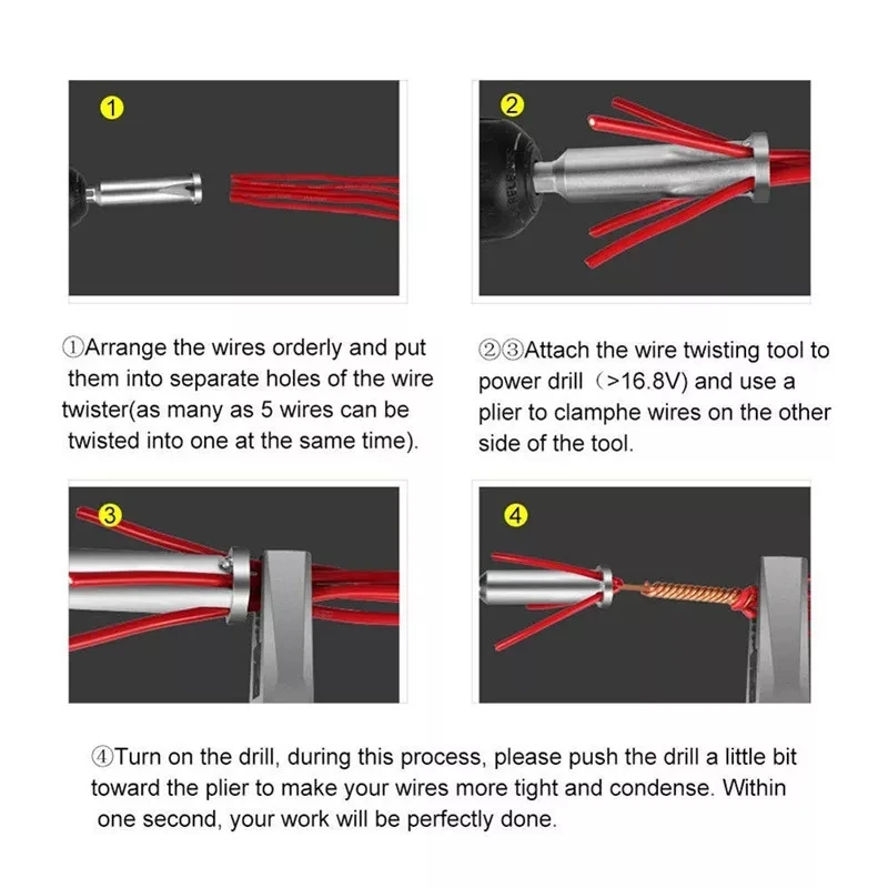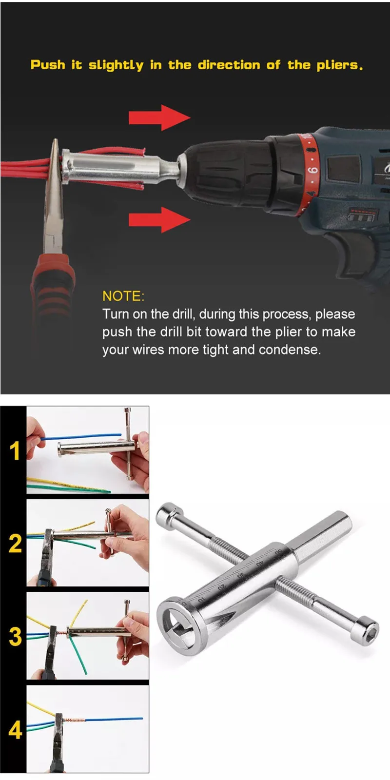 -- Инструмент для Скручивания Проволоки можно прикрепить к электрической дрели и легко и эффективно выполнять функции с помощью простых шагов.