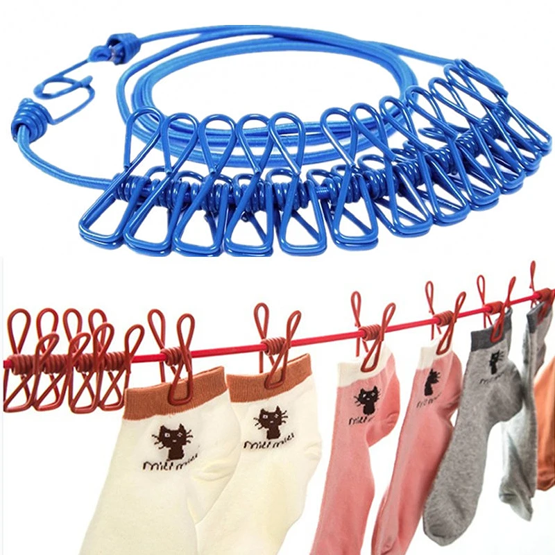 Портативная ветрозащитная вешалка для одежды, сушилка для одежды, веревка, веревка для прищепки для путешествий с 12 зажимами