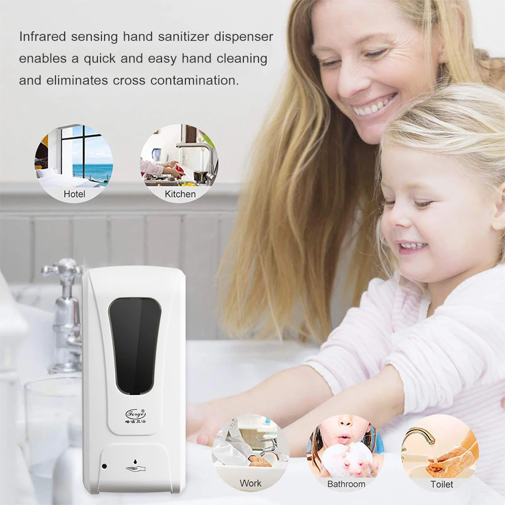 Автоматический датчик работает, Бесконтактное мыло для рук машина предназначена для дать автоматическую дозировку дезинфицирующего средства, что позволяет быстро и легко чистить руки и устраняет перекрестное загрязнение, достижения оптимальной гигиены рук. Он питается от 4 батарей C или адаптера постоянного тока (Примечание: Аккумуляторы и адаптер не включены в этот продукт), надежное устройство с длительным сроком службы.