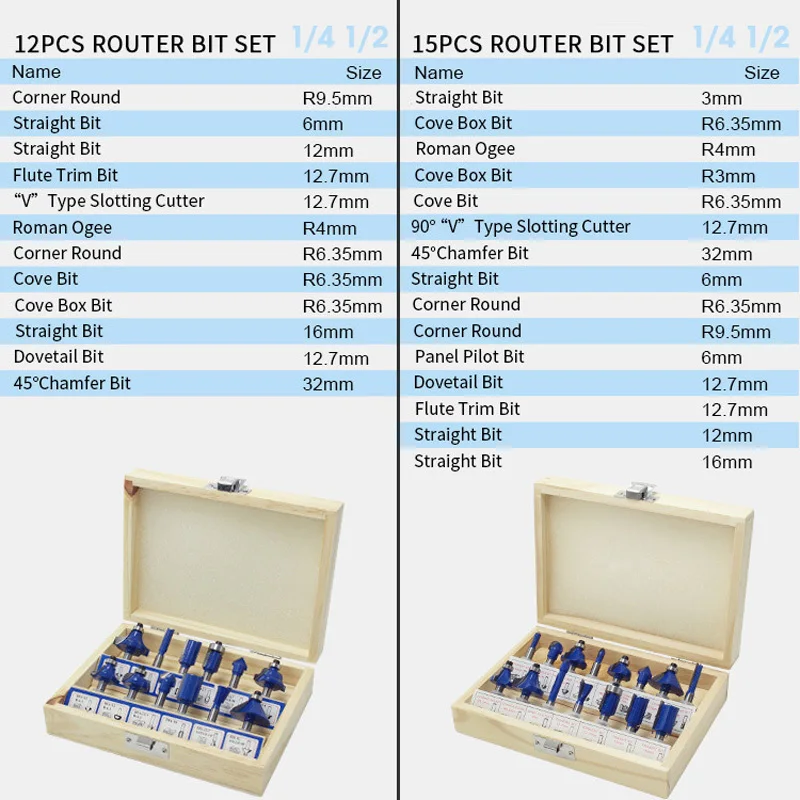LAMEZIA 12/15 шт 1/4 1/2 дюйма 8 мм ручка фрезерный станок набор бит для карбида хвостовик мельница Деревообрабатывающие инструменты