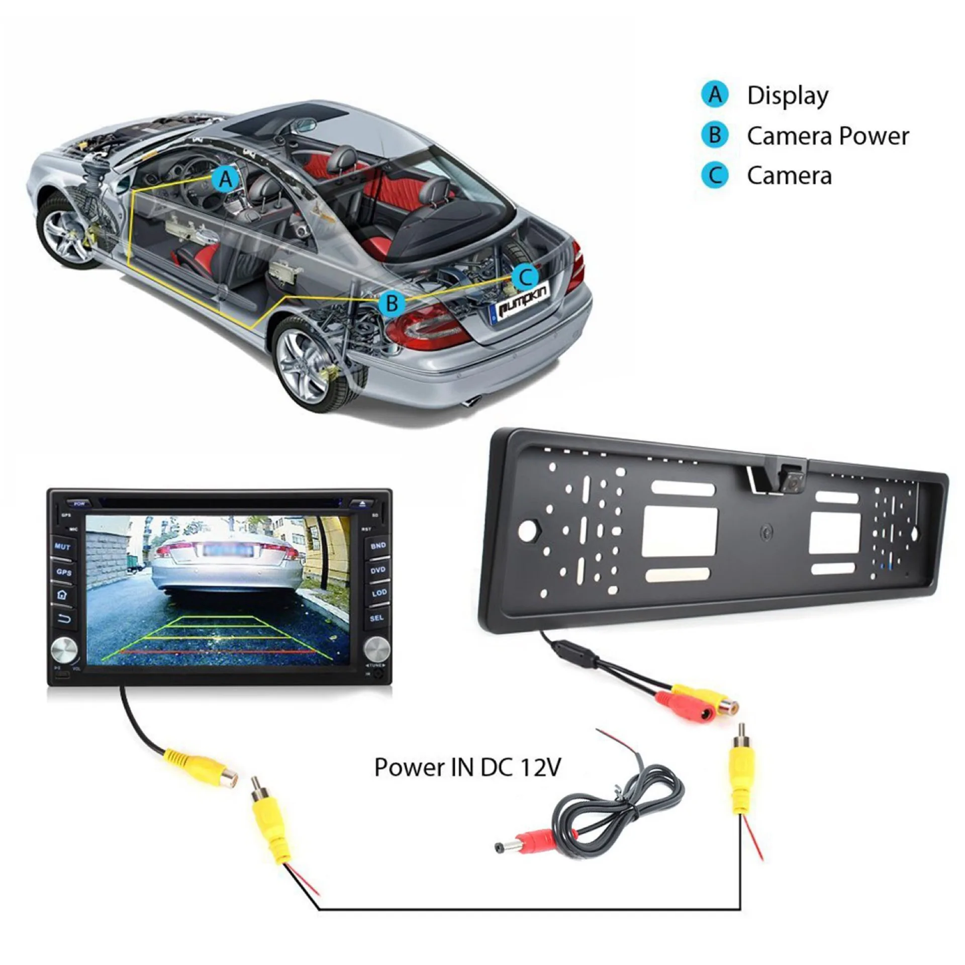 European license plate visual reversing camera imaging system. Installation by screws under license plate For UK / European license plates Show obstacles on the display