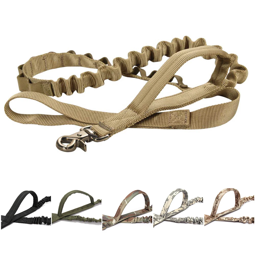 Этот Тактический собачий поводок прочный и легкий. Изготовлен из высококачественного и прочного нейлонового материала, металлической пряжкой. Подходит для тренировки собак или повседневной жизни. Хороший выбор для всех видов собак. Этот цвет COB имеет 2 вида зажимов, будет случайной доставкой. 2 ручки управления. Этот военный собачий поводок имеет две ручки, одна ручка в конце и одна мягкая ручка рядом с зажимом. Поводок k9 подходит для тренировок собак, охотничьих собак, самоедов, пастухов, идеально подходит для больших и средних собак. Эластичные ленты обеспечивают пластичность. Быстросъемный поводок для собак имеет эластичное растяжение (расширяется примерно на 53 см), эластичное подушку удерживает руку или тело вашей собаки от срыва, когда ваша собака изменяет направление или вперед, достаточно растягивается, что снижает риск травм и повышает комфорт. Металлический крючок и регулируемая прямоугольная застежка. Металлический крючок можно прикрепить к собачьему жилету или воротнику, он может выдерживать растяжение до 200 кг после тестирования. Прямоугольная металлическая пряжка используется для регулировки длины ручки, обхватив собачий поводок на ремне, или временно Зафиксируйте свою собаку где-то, когда вам нужно уйти.
