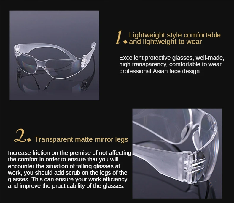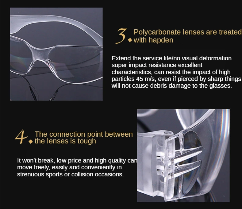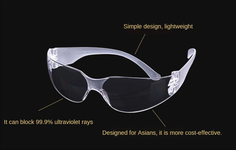 Высокое качество и Новинка Материал: пластик Цвет: как на изображении Количество: 1 шт. Супер удобные защитные очки, легкие и прочные.