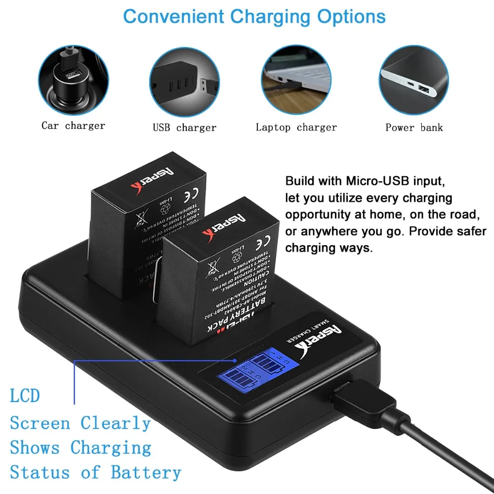 AsperX 2PC Camera Batteries for GoPro Hero3 Gopro Hero 3 hero3 3+ Battery+LCD Dual Charger for GoPro HERO3 black Action Cameras