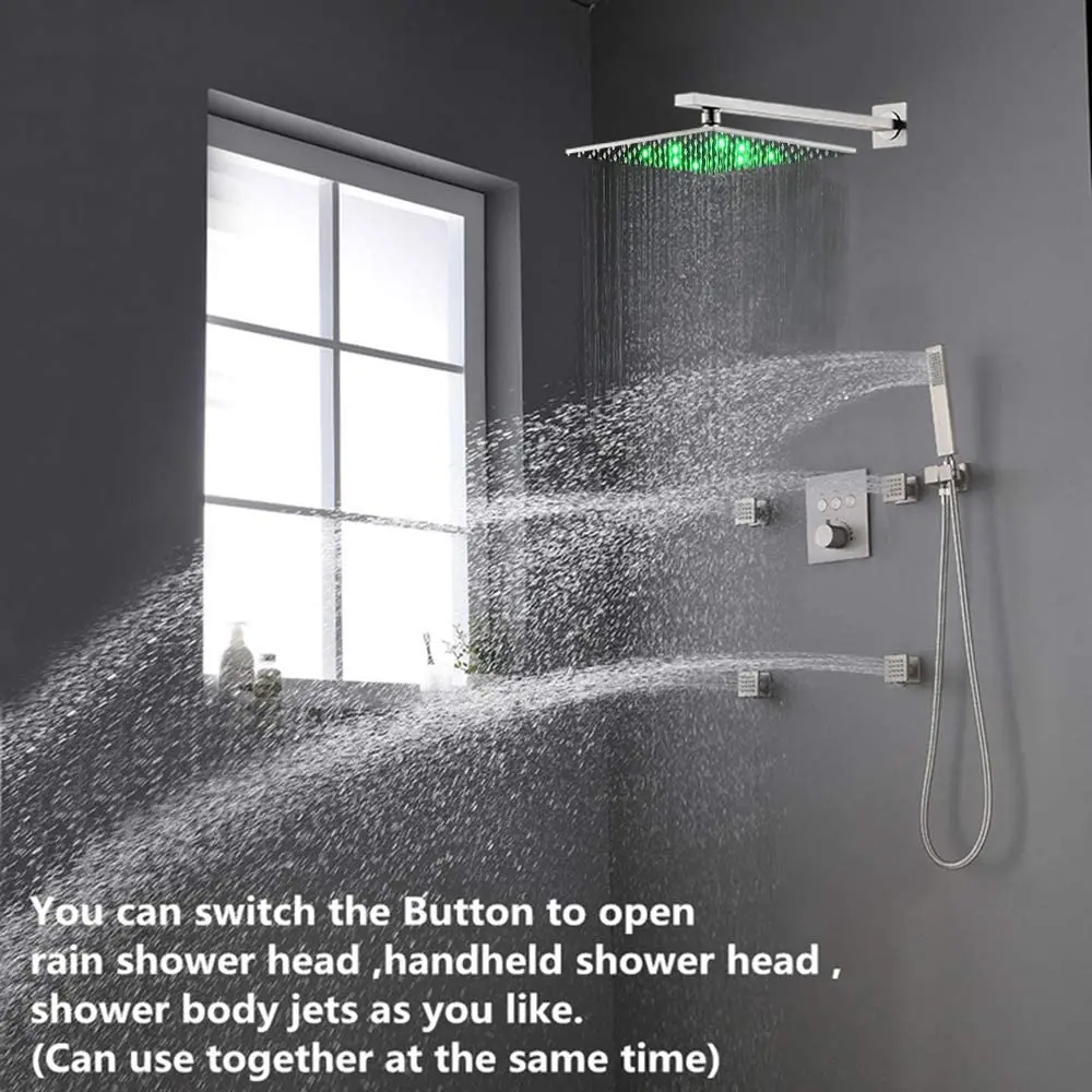 Термостатическая Душевая система настенный 12 дюймов светодиодный душ с насадкой для душа с 4 шт. струями тела смеситель для душа набор матовый никель отделка