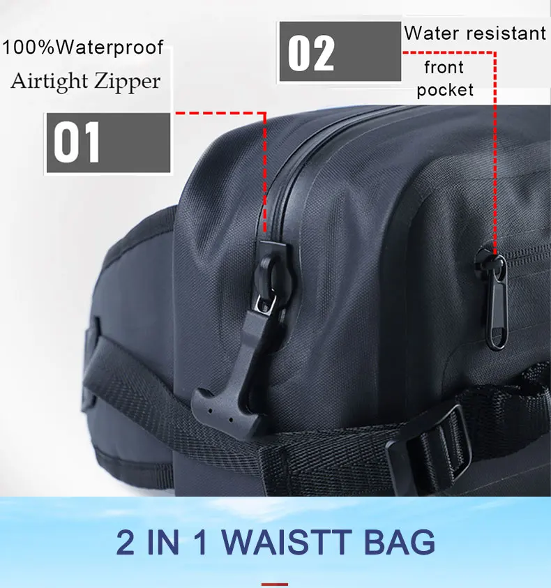 Герметичный дизайн: герметичный поясной мешок предназначен для водонепроницаемости благодаря его однокорпусному дизайну и высокочастотным Плавленым краям. 100% водонепроницаемость: водонепроницаемая поясная сумка для дождя, пота, пыли и многого другого. Держите снаряжение в безопасности, сухом и защищенном! Сверхмощное качество: корпус изготовлен из сверхпрочного плотного ТПУ, который не подведет вас, когда вам это нужно больше всего. С толстыми нейлоновыми ремешками и очень надежной пряжкой. Подходит для смартфонов: Этот fanny pack может вместить ваш телефон, паспорт, ключи и кошелек среди других небольших элементов 1. Набор точек крепления на цепочке daisy Защита от брызг передний карман: в то время как внутренний отсек на молнии является 100% водонепроницаемым, маленький внешний карман Устойчив только к брызгам.