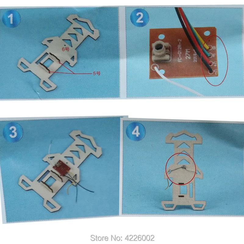 4. Белый провод приемника и приемной антенны фиксируется на отверстии части 6 с помощью винтов. Посмотрите на белую проволоку на втором рисунке.
