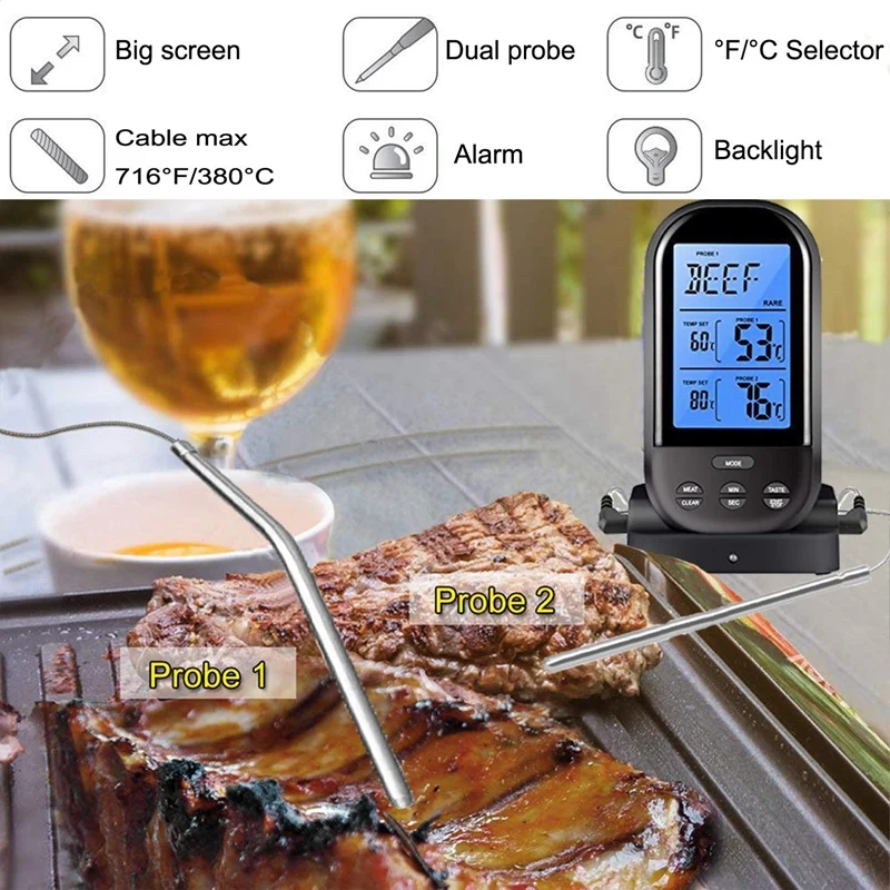 Функция таймера: больше не нужно продолжать наблюдать и следить, когда температура достигнет целевой температуры или закончит время, которое вы устанавливаете, мгновенное считывание Мяса термометр будет сигналом, чтобы сообщить вам.