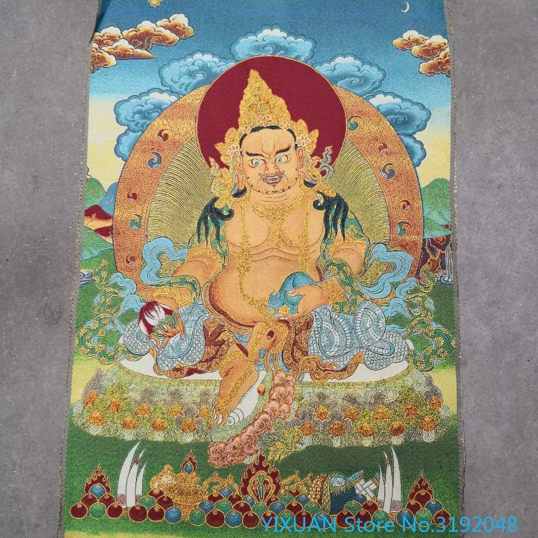 Thangka, Бог богатства, окрашенная парча, окрашенный шелк, Вышитое сокровище, Tianwang, вышитые Thangka