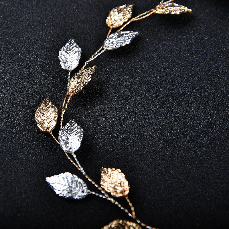 Материал: лист из цинкового сплава, медная проволока Размеры: 43 см * 1,8 см Вес: 24 г/шт. Украшения для волос: украшение для волос в виде листьев серебра и золота Повод: Свадьба Вечерние, церемония, выпускной