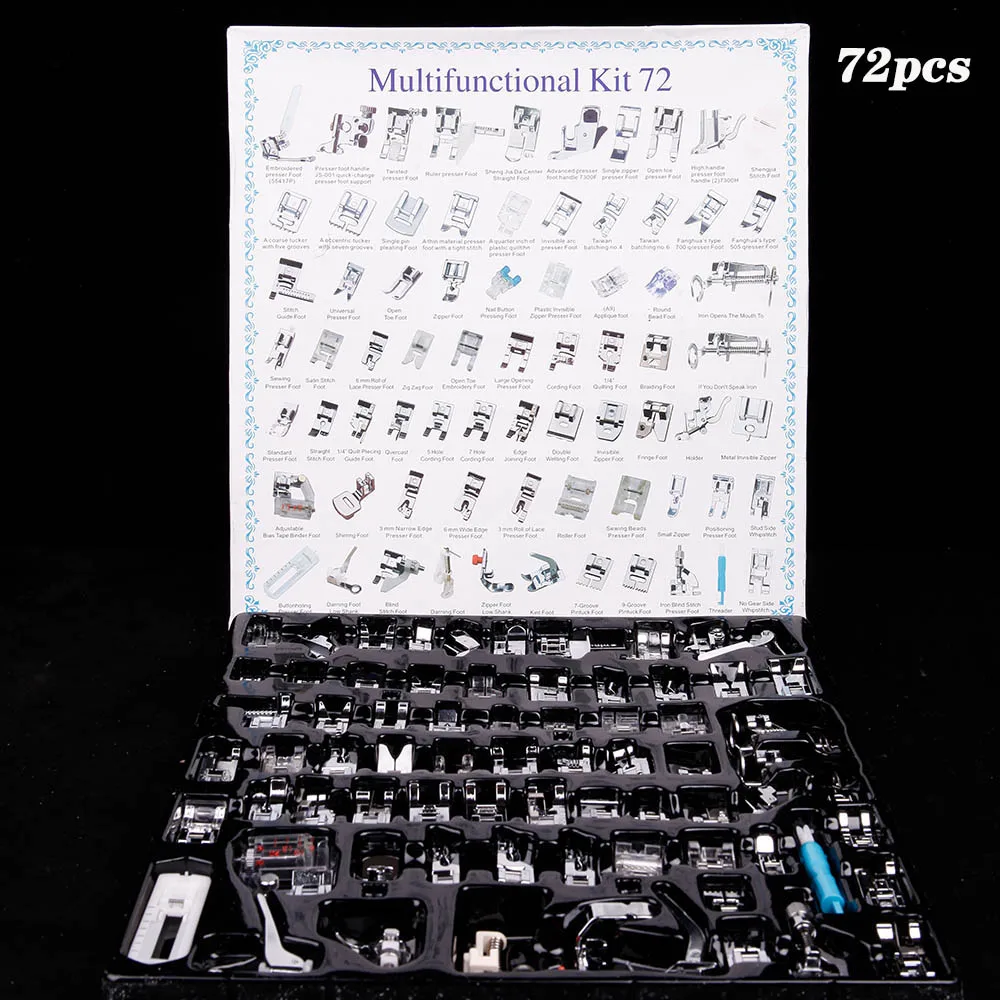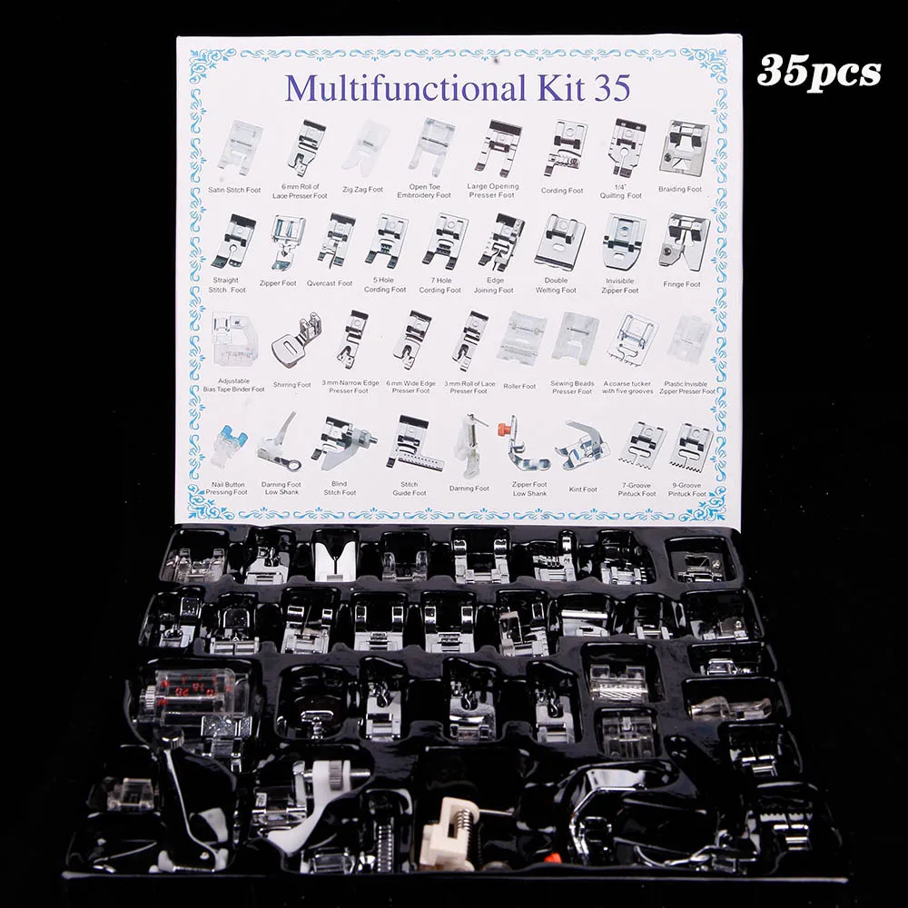 Особенности: Подходит для большинства бытовых многофункциональных швейных машин. Красиво упаковано и легко хранить. Технические характеристики: Количество: 11 шт., 16 шт., 32 шт., 35 шт., 42 шт., 45 шт., 52 шт., 62 шт. Примечание: Продукт не подходит для домашней старой швейной машины, мини-швейной машины, промышленной швейной машины, швейной машины с высокой ручкой и наклонной швейной машины.