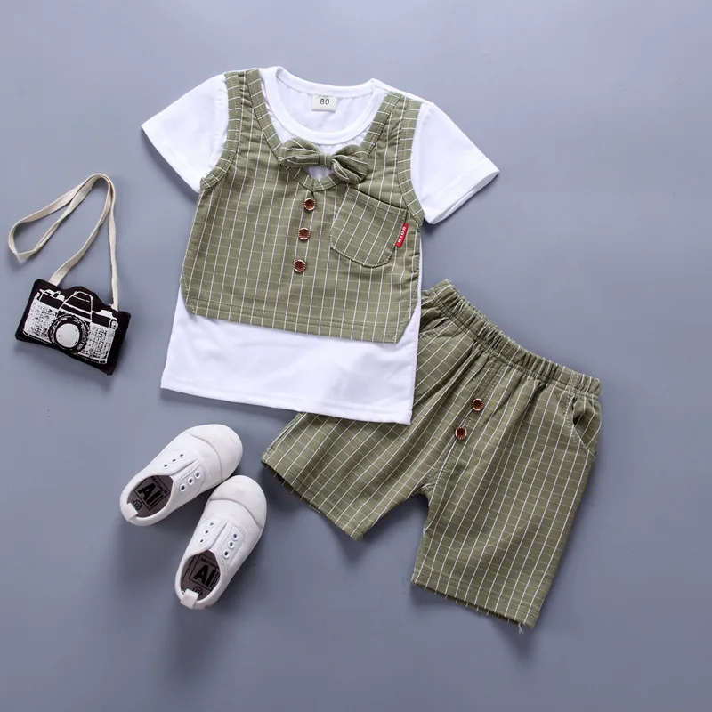 Комплекты одежды для маленьких мальчиков летний костюм джентльмена для мальчиков футболка + джинсовые шорты одежда для малышей A0126