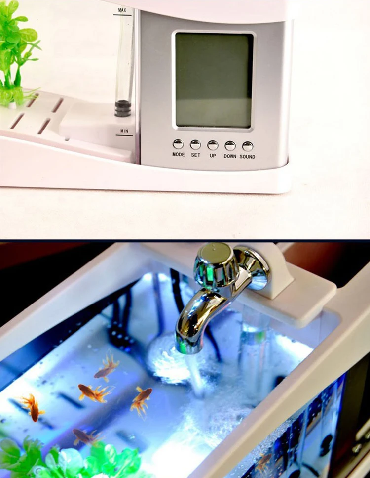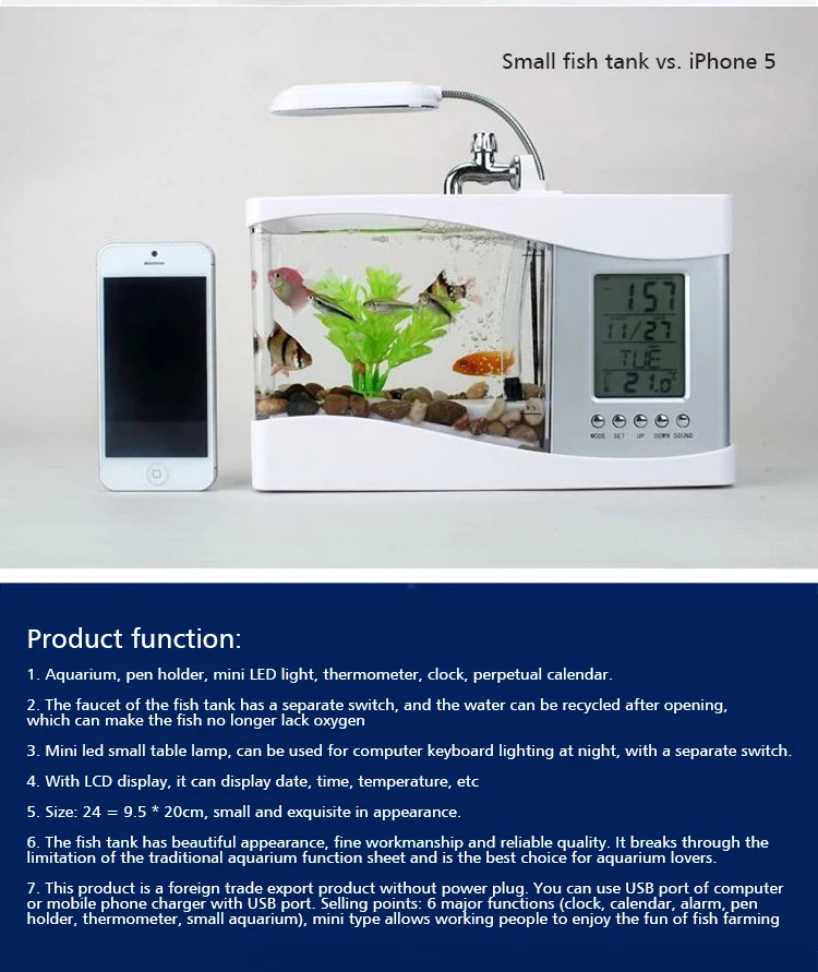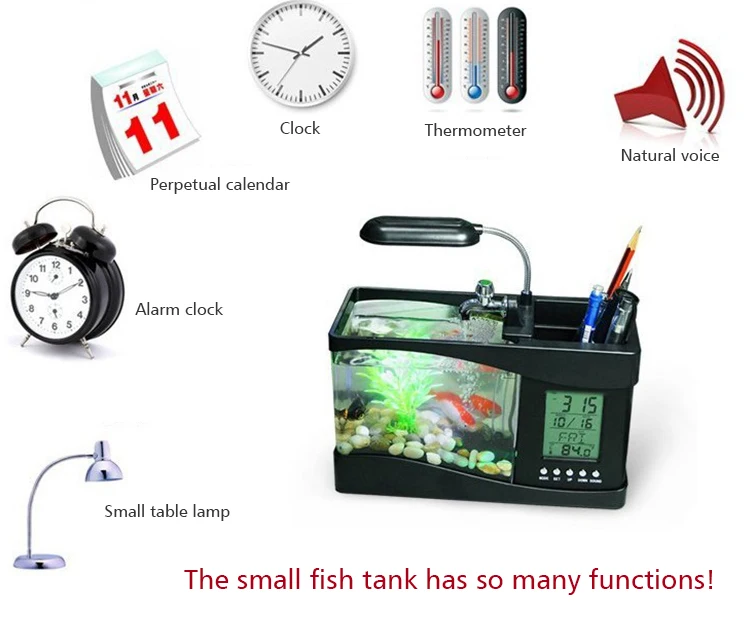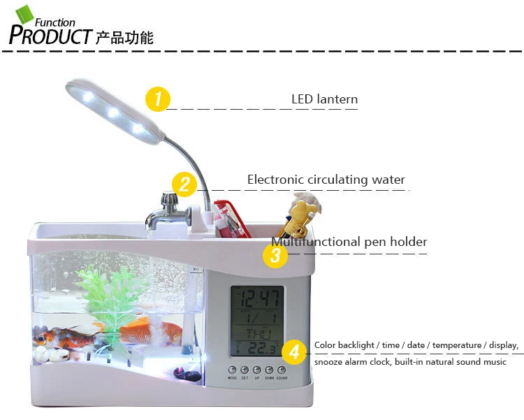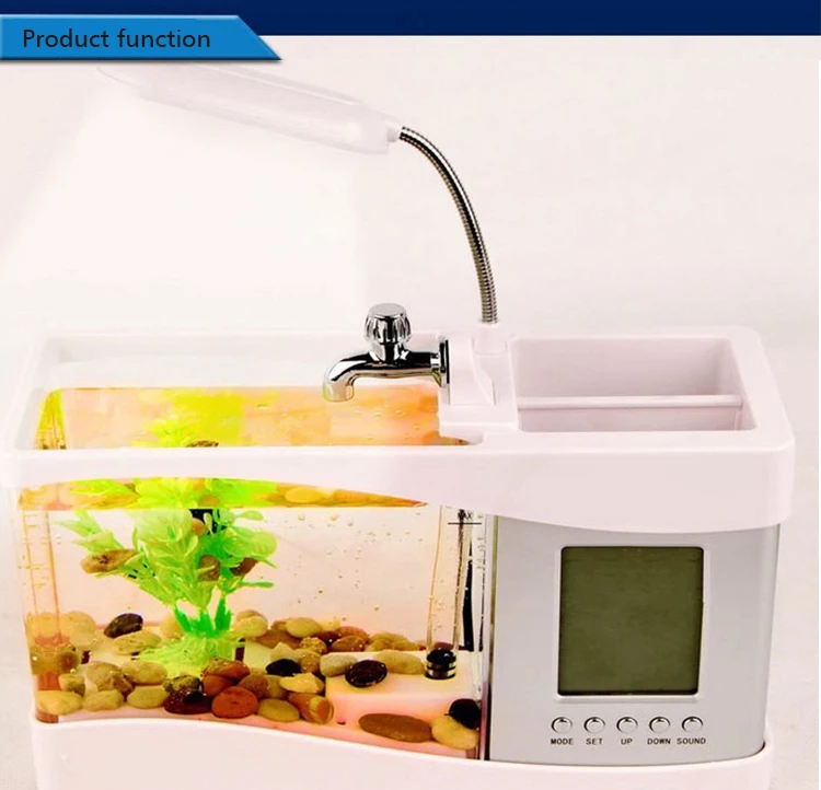 Мини аквариум с LED светильник ЖК-дисплей экран и часы Аквариум Украшение подарок