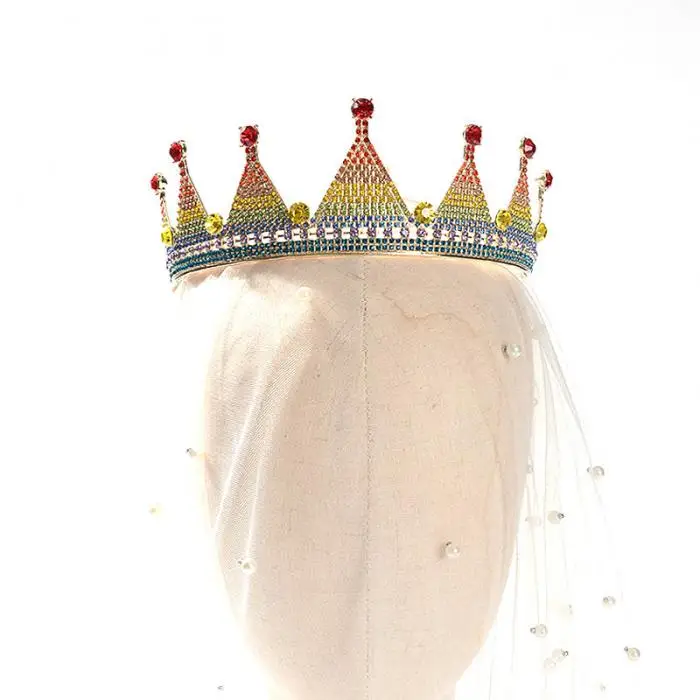 FORSEVEN Сияющие красочные красные хрустальные диадемы и короны свадебные вуали ободки для невесты Noiva радужные украшения для волос аксессуары