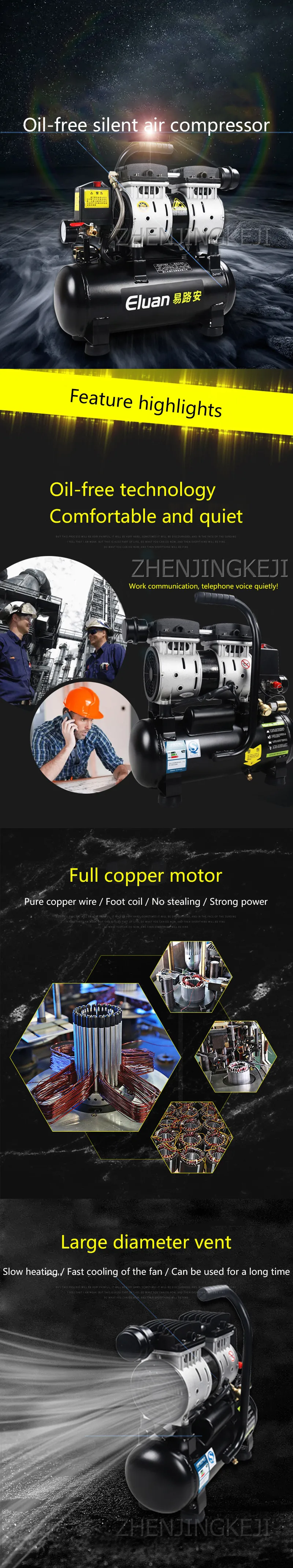 Без топлива бесшумный воздушный компрессор деревообрабатывающий распылитель краски маленький поршневой воздушный насос все медные электродвигатели с большим отверстием для охлаждения компрессор