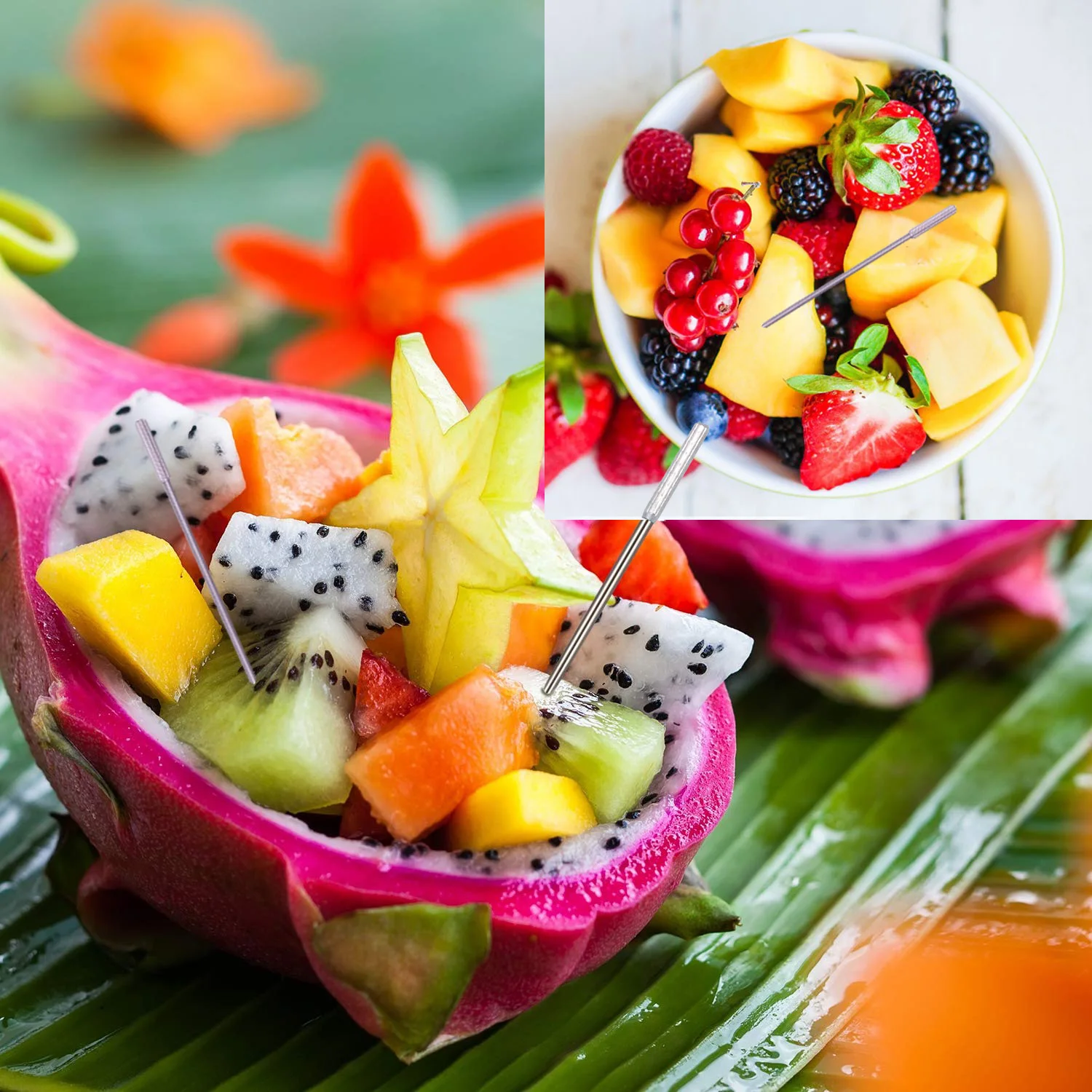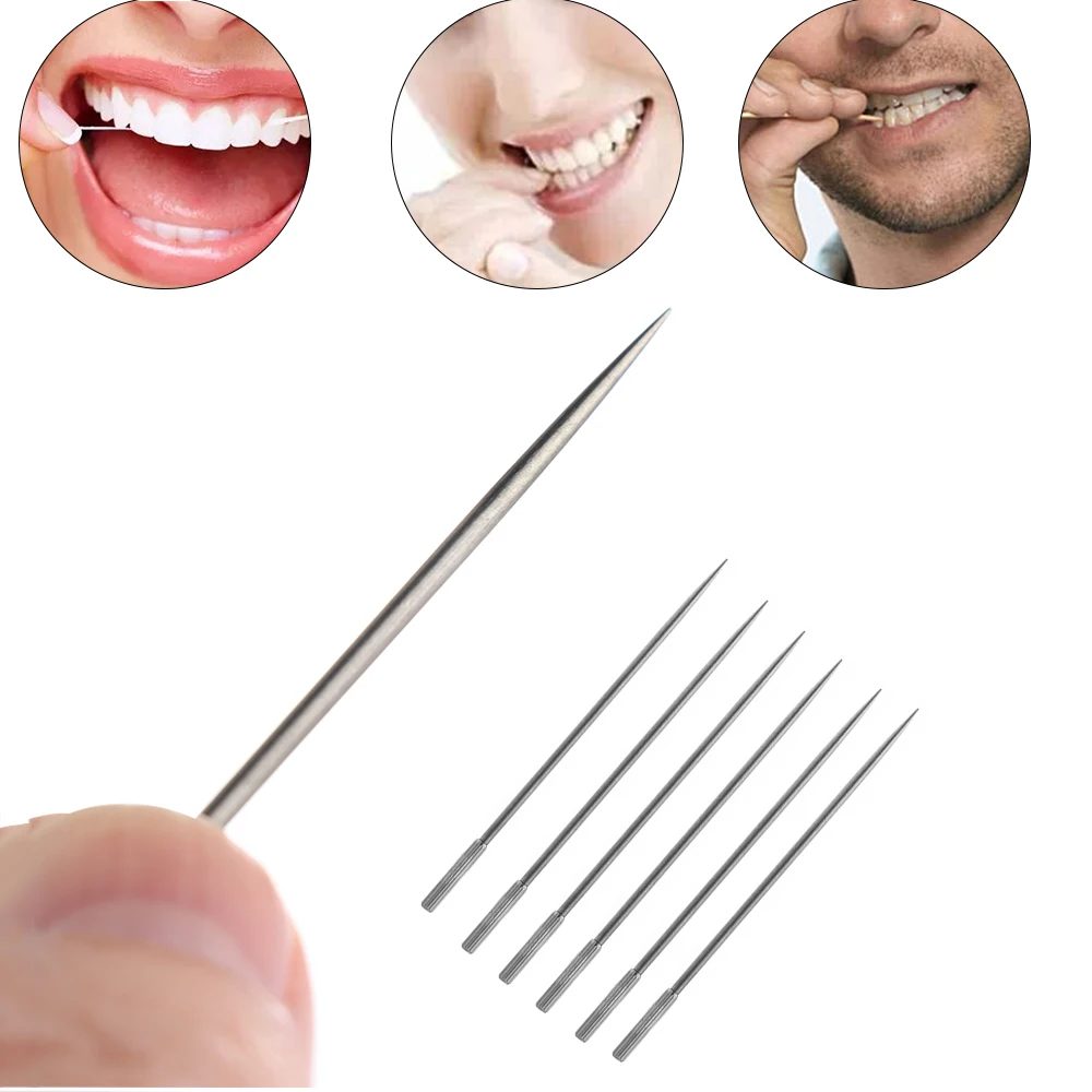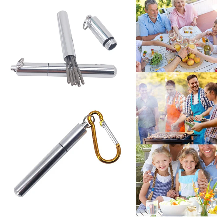 Зубочистки 6 шт., декоративные портативные уличные из нержавеющей стали Диспенсер Для Зубочисток с многоразовыми пищевыми фруктовыми палочками