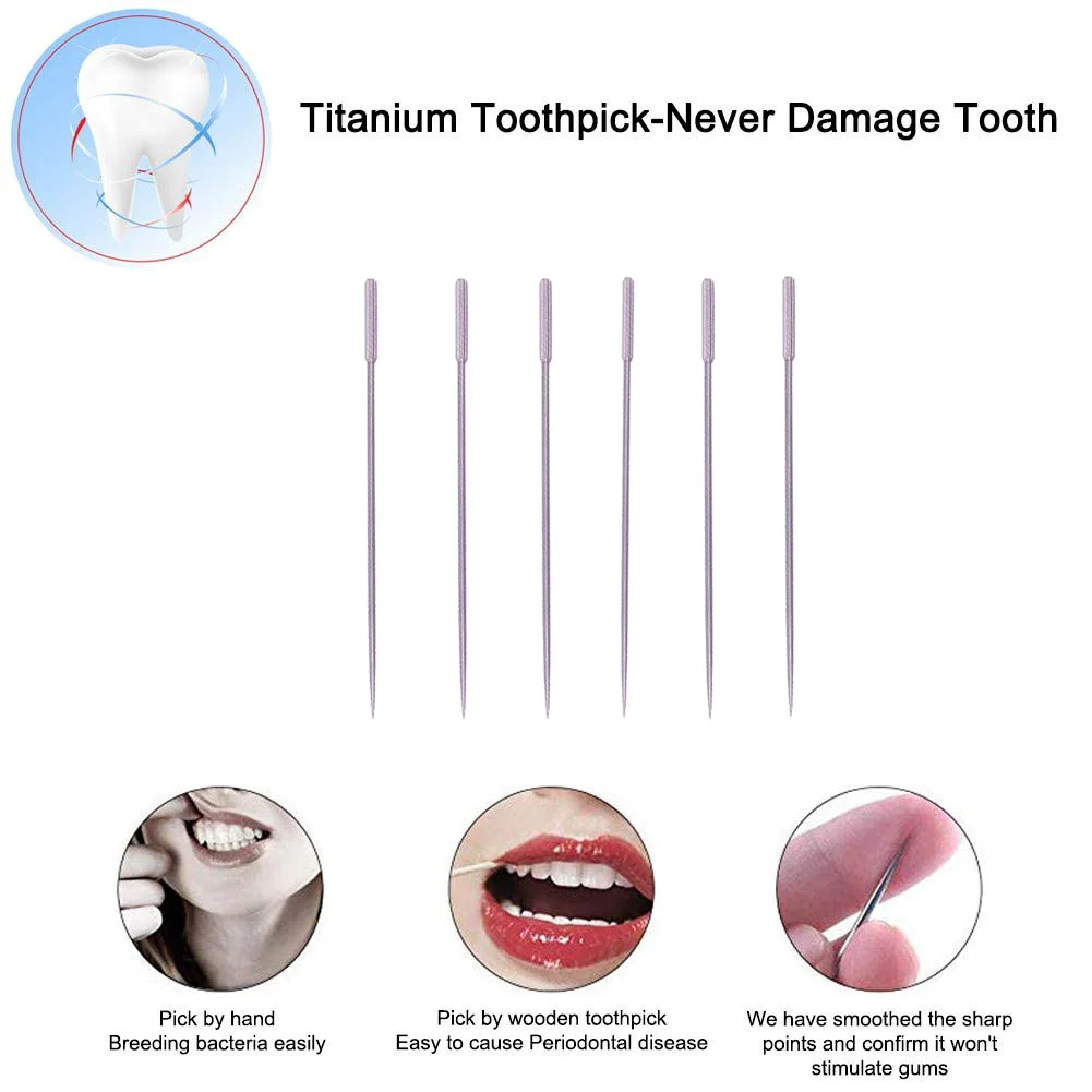 6 шт. С одним чехлом. Преимущества титановой зубочистки: 1. Титановая зубочистка, которая не травмирует зубы, ее удобно носить с собой, ее стоит иметь. 2. Верхняя часть зубочистки заточена, а наконечник гладкий и не травмирует зубы, во избежание раздражения десен. 3. Можно сгибать, не ломаясь, жесткие и эластичные.