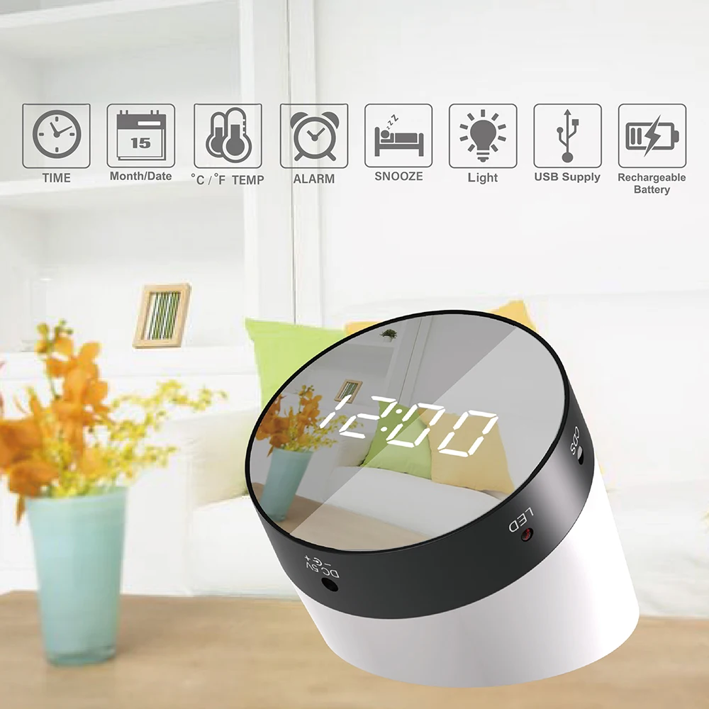 【 Светильник с простым дизайном 】: эта чистая, современная настольная лампа обеспечивает чистый, теплый светильник для спален, гостиных и расслабленных современных офисов. 【 Задняя часть батареи: не нужно беспокоиться, если питание выходит в ночное время. Запасная перезаряжаемая батарея 600 мА · ч держит светодиодный будильник и настольную лампу вверх и работать. 【Mirror】: Этот зеркальный будильник имеет большой светодиодный экран. Прозрачное зеркало позволяет вам полностью наслаждаться макияжем. 【Будильник с функцией повтора 】: Наслаждайтесь еще несколькими сладкими снами благодаря удобной функции повтора будильника. Иногда это немного лишнего сна-это все, что нужно, чтобы проснуться и почувствовать себя обновленным. 【The светодиодный экран качественное обслуживание 3-х уровневый Яркость: Дисплей имеет 3 настройки яркости соответствии с вашими предпочтениями. Яркость можно регулировать вручную или автоматически менять на светильник. Время в 12/ 24 часа в сутки, сегодня дата 、 температуры в круг дисплея.