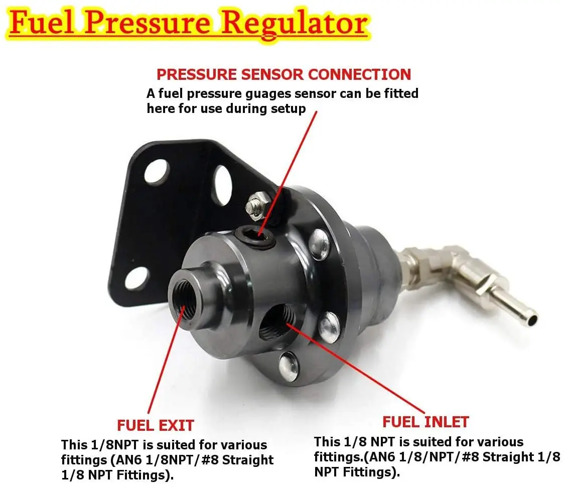 Особенности: 1. Он предотвращает голодание топлива для более стабильного усиления и расхода топлива. 2. Маслонаполненный манометр для максимального и последовательного измерения. 3. Предлагаем соответствующие настройки давления топлива для высокопроизводительных применений. 4. Обеспечивает высочайшую производительность автомобилей с высокой надежностью в эксплуатации. 5. Оснащен эксклюзивной конструкцией для стабилизации и без того превосходного контроля давления топлива и детальной регулировки. 6. С двумя фитингами 8 мм с зазубринами. Спецификация: Материал: алюминий Цвет: черный, титан, красный, золотой, серебряный Количество: 1 комплект Отделка поверхности: твердый анодированный Ниппель вакуумного шланга: 4,5 мм Регулировка давления: кгс/см?-кгс/см? Установка: 1. Перед началом работы выберите подходящие фитинги или ниппель, у вас есть необходимые аксессуары для установки регулятора. 2. Если вы подключите манометр топлива к винтовой пробке регулятора давления топлива, лучше всего закрутить винт тефлоновой лентой, чтобы правильно запечатать винт. 3. Затем Монтажный кронштейн используется для крепления штатного в автомобиле. 4. Подключите соединения топливных труб. Посылка входит: 1 х регулятор давления топлива 1 х манометр топлива 2 штуцера (AN6 1/8NPT) 2 х ниппеля для шланга (#8 прямой 1/8NPT)