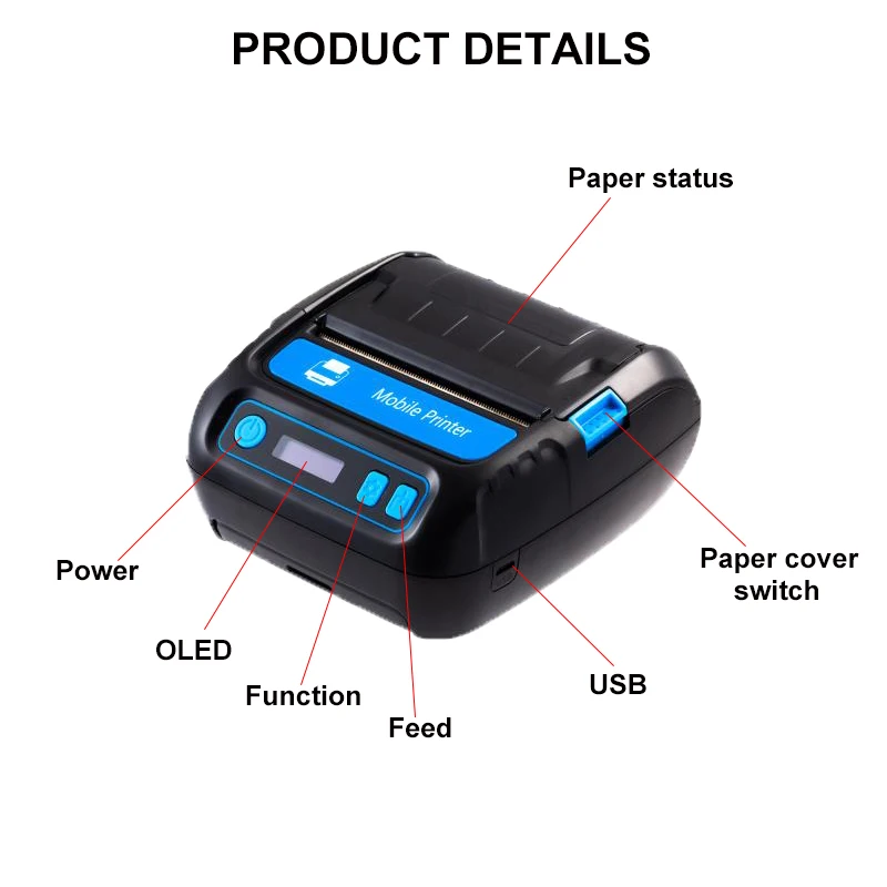 Термопринтер 3 дюйма квитанция/этикетка 2 в 1 POS принтер 80 мм Bluetooth Android/iOS/Windows для малого бизнеса