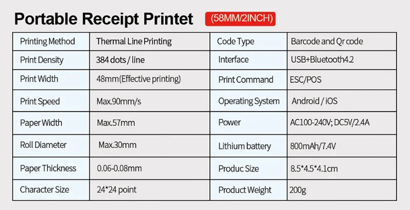 Ширина бумаги: 58 мм